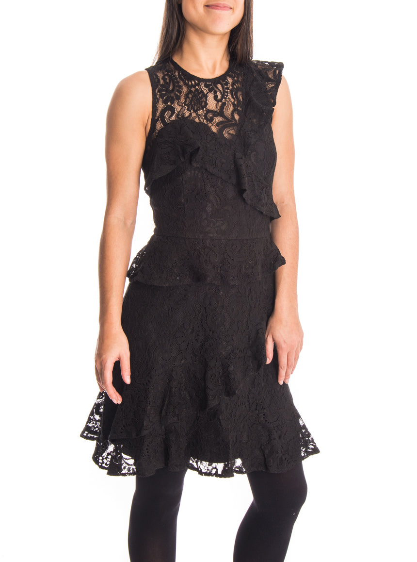 Robe sans manches en dentelle. Allure chic et habillée. Matière de qualité et jupon intégré.
