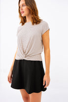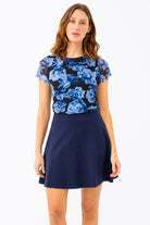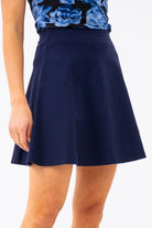 Cette jupe courte évasée est dotée d'une taille élastique pour un ajustement optimal. Sa forme évasée et sa matière extensible (67% rayonne, 28% nylon, 5% spandex) offrent une silhouette flatteuse et un confort accru.