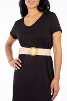 Ceinture de taille en lin tressé pour femme, de la marque Ichi. Boucle ronde en plastique. Ajoutez la touche finale parfaite à vos tenues avec cette ceinture pour femme.