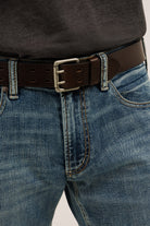 Cette ceinture en cuir brun foncé se distingue par sa boucle rectangulaire à double ardillon, idéale pour un style affirmé et soigné. Sa finition en pointe et sa largeur de 1 ½ pouce lui confèrent élégance et confort au quotidien. Conçue en matière robuste, elle garantit durabilité, maintien et polyvalence pour toutes vos tenues.