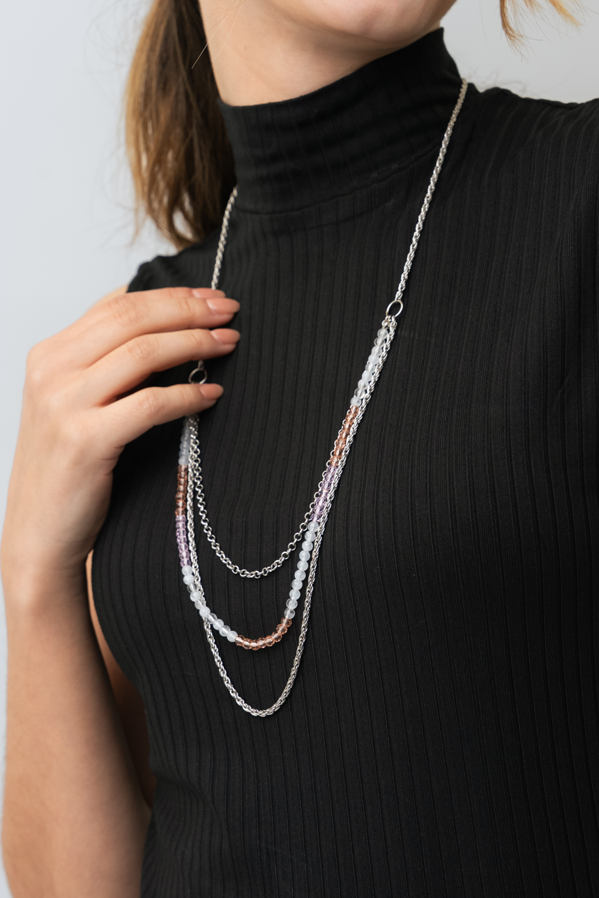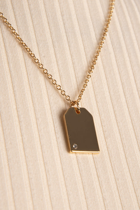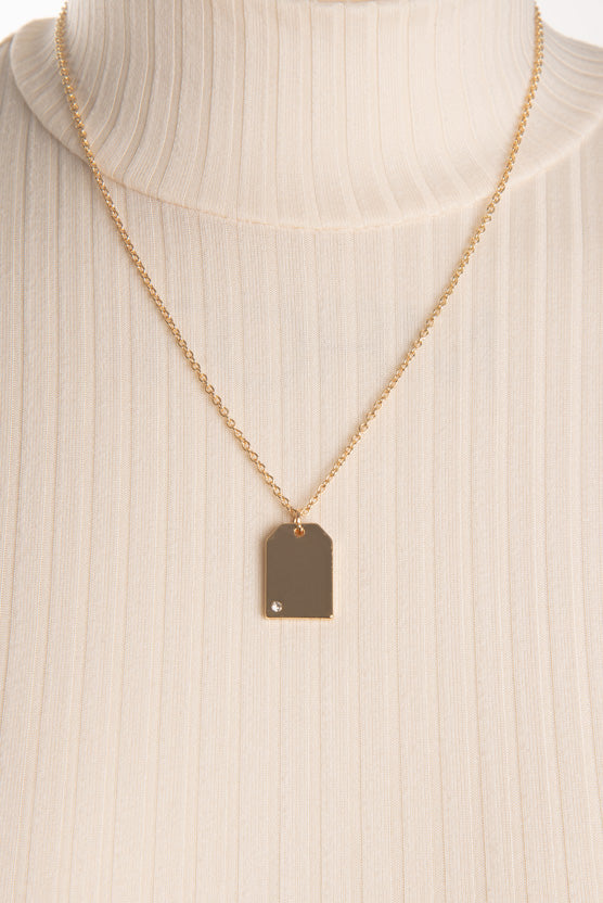 Collier chaîne plaque avec pierre scintillante | 2 couleurs