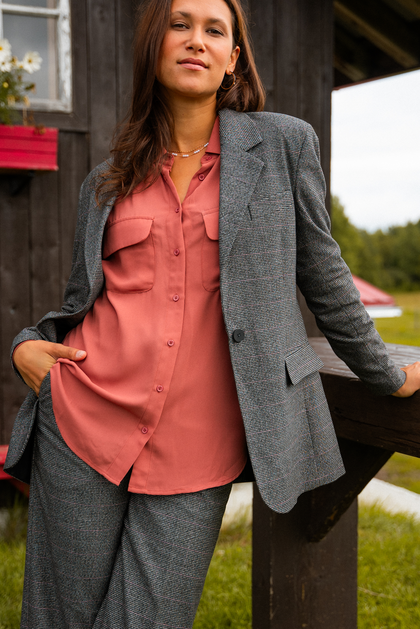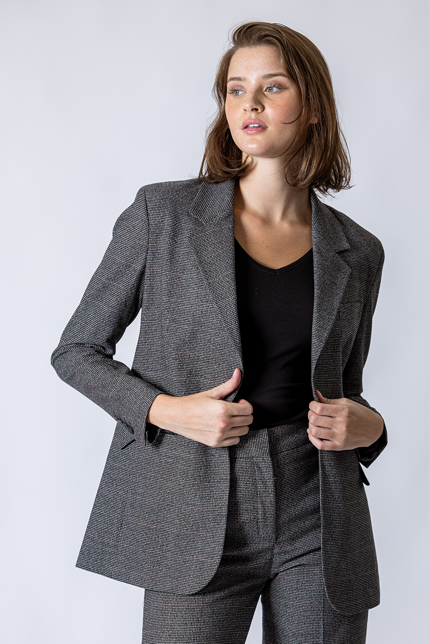 Le blazer à carreaux avec épaulettes