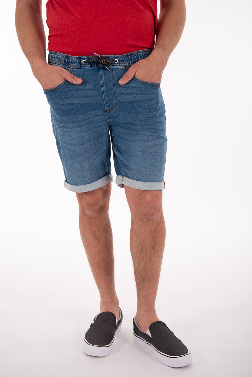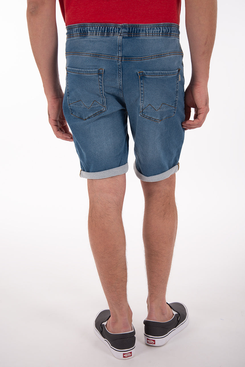 Short en jean de la marque Blend. Denim extensible au fini délavé. Poches latérales et poches arrières. Bordures à revers cousues. Taille élastique ajustable sur cordon coulissant.