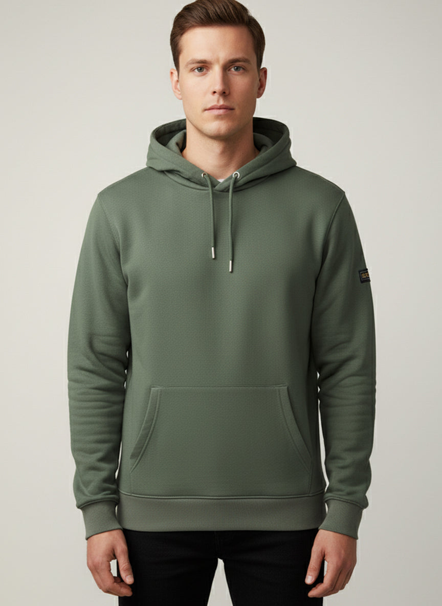 Le chandail kangourou à capuchon uni présente une coupe régulière confortable et décontractée. Il est équipé d’un capuchon avec cordon de serrage et d’une poche kangourou pratique à l’avant. Ses manches longues, ses poignets et son ourlet côtelés assurent une finition soignée, tandis que le coton ouaté doux et extensible procure chaleur et confort au quotidien.