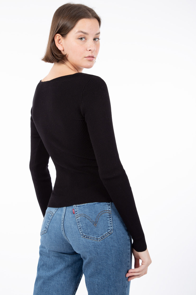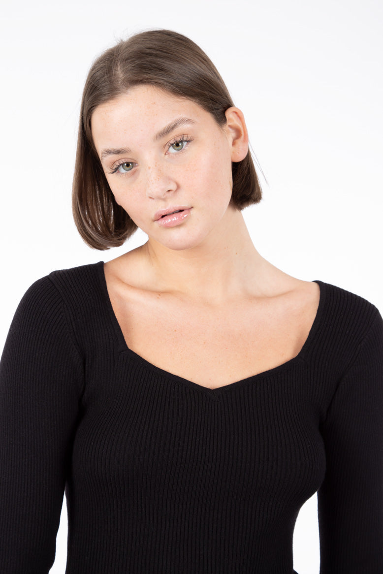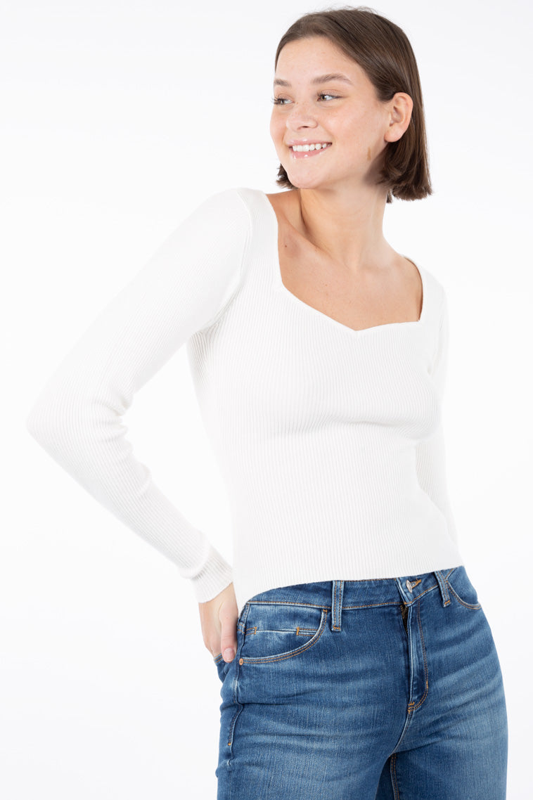 Chandail uni col carré pour femme, de la collection Pentagone. Tissu côtelé extensible pour une parfaite liberté de mouvement. Coupe ajustée. Col carré pour un look tendance. Ce chandail pour femme versatile ira avec tous vos bas. Portez-le à l'intérieur d'une jupe ou de votre jean préféré.