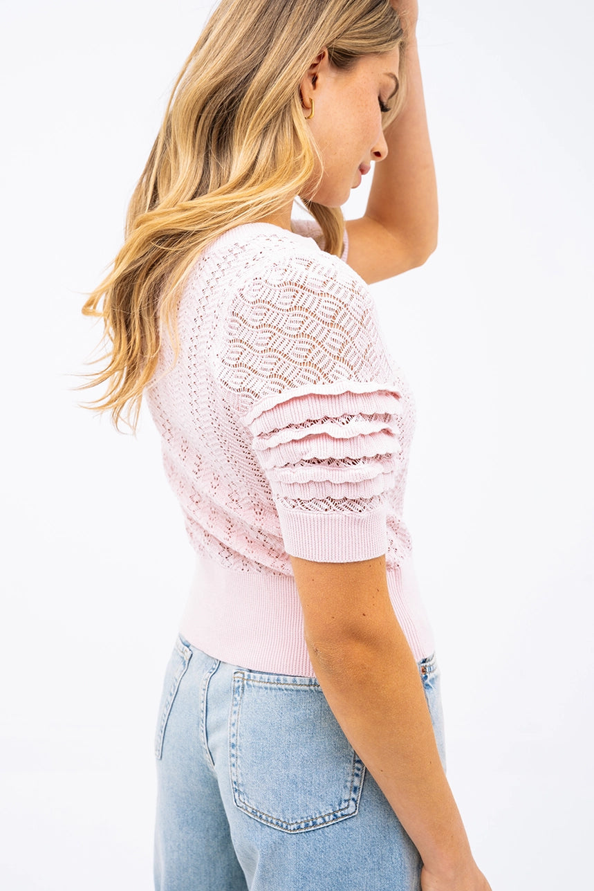 Le chandail à manche courte en tricot ajouré