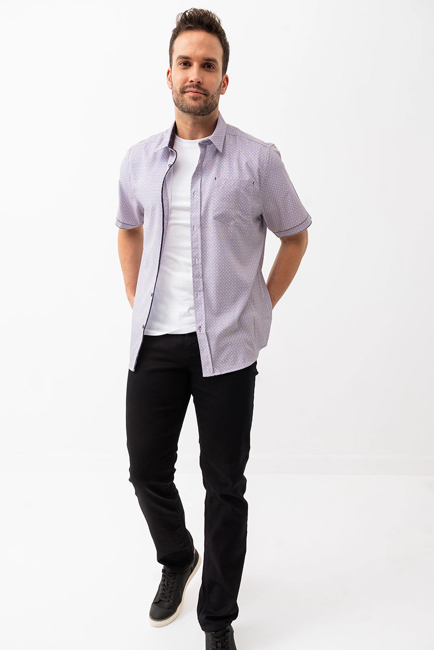 Avec son imprimé all-over et sa coupe régulière, cette chemise allie confort et caractère. Confectionnée dans une matière fluide et extensible, elle offre une grande liberté de mouvement tout en conservant une belle tenue. Le col chemise classique, l’ouverture boutonnée sur toute la longueur et l’ourlet arrondi lui donnent une allure soignée, tandis que la poche plaquée et les coutures contrastantes au bas des manches ajoutent une touche de style subtile et originale. Idéale pour un look à la fois décontracté et affirmé.