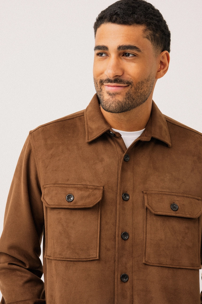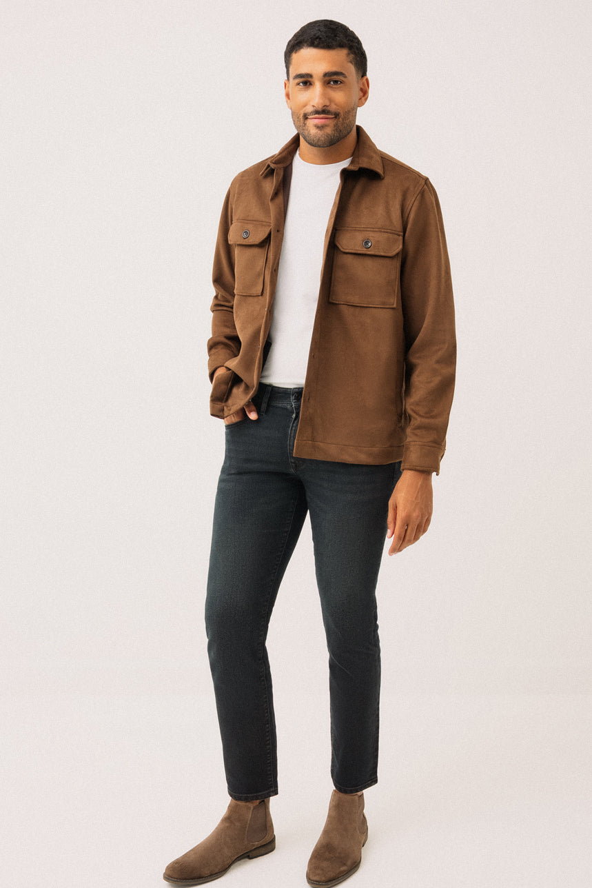 La surchemise en tissu effet suède par Projek Raw est une pièce polyvalente qui allie confort et style. Sa coupe droite et son col chemisier lui confèrent une allure classique, tandis que son tissu extensible à effet suède ajoute une touche moderne et raffinée. Elle est dotée d’une boutonnière pleine longueur, de manches longues avec poignets boutonnés, de deux poches appliquées à rabat à la poitrine et de deux poches Welt en angle à l’avant pour plus de praticité. Son ourlet droit complète son design épuré, idéal à superposer sur un t-shirt ou à porter fermée pour un look plus structuré.