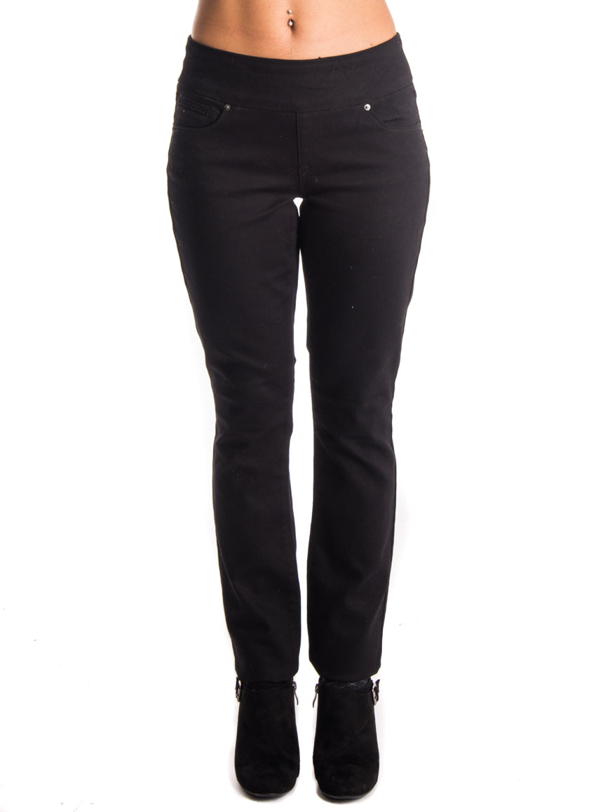 Jeans Pentagone sans bouton à jambe droite. La taille pull-on est idéale sous un chandail plus long, elle ne crée pas de bosse sous celui-ci.