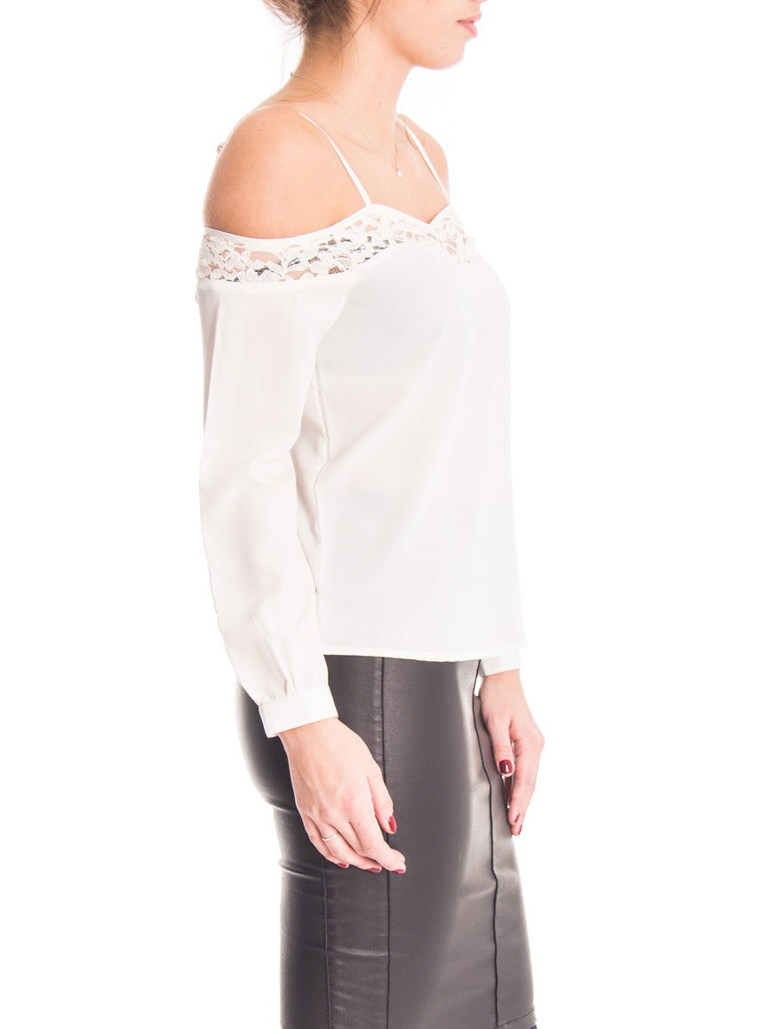 Blouse légère Pentagone à épaules dégagées et à manches longues. Les bretelles au niveau des épaules sont minces et ajustables.