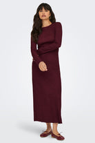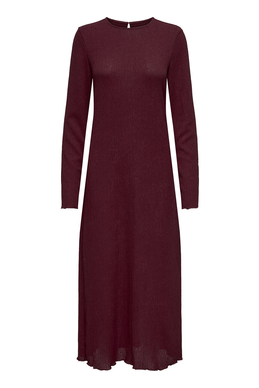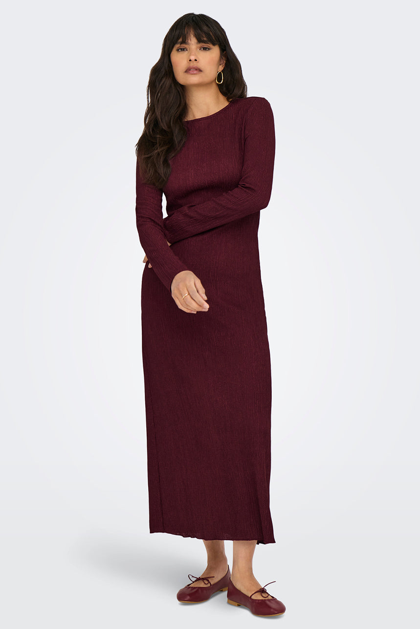 La robe maxi bordeaux à manches longues par Only est une pièce fluide et élégante, conçue avec une coupe légèrement ajustée qui souligne subtilement la silhouette. Dotée d’un col rond classique et de manches longues, elle se distingue par ses finitions au point foulard qui apportent une touche raffinée. Sa longueur maxi et sa matière texturée et fluide garantissent un tombé gracieux et un confort optimal tout au long de la journée.