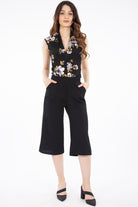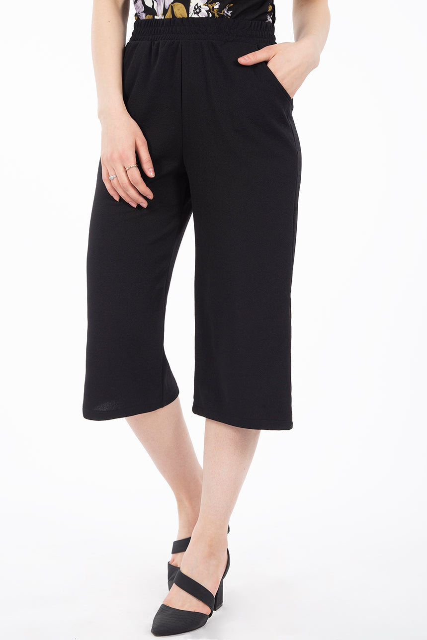 Capri noir pour femme, de la collection Pentagone. Tissu fluide et extensible, super léger. Poches latérales. Ce capri pour femme vous plaira grâce à sa coupe gaucho et son look chic. Il conviendra à toutes les silhouettes.