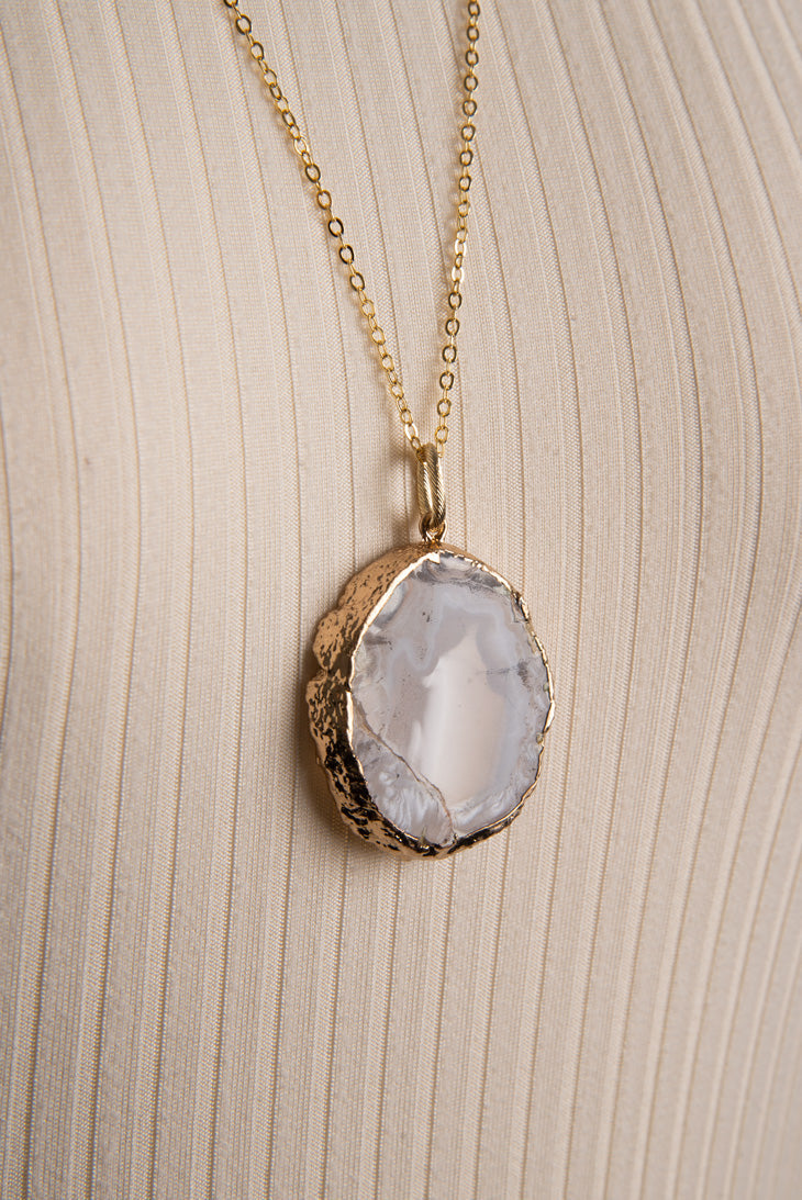 Collier chaîne tranche de pierre précieuse | 2 couleurs