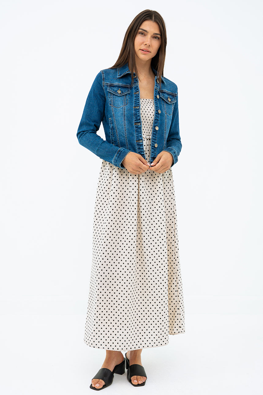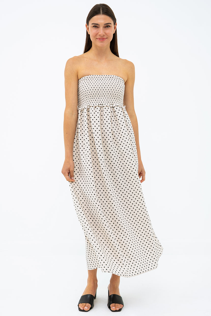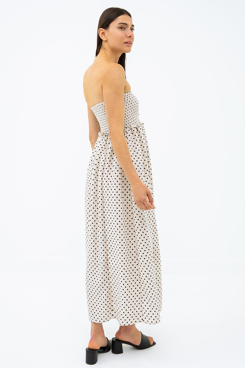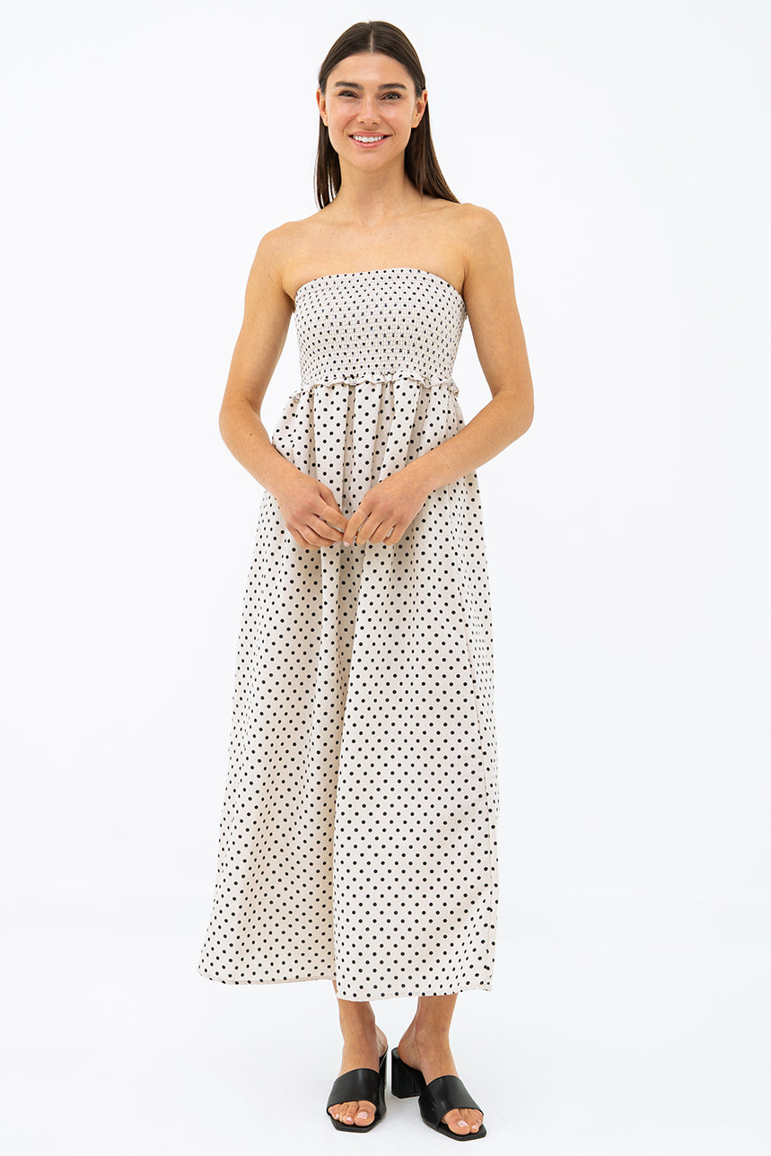 Élégante et féminine, la robe tube longue à pois par Only séduit par sa coupe ajustée évasée qui épouse délicatement la silhouette. Sans bretelles, elle met en valeur les épaules avec subtilité, tandis que le buste nid d’abeille extensible assure un maintien confortable et un ajustement parfait. Confectionnée dans une matière légère et confortable, cette robe fluide est idéale pour les journées chaudes ou les soirées estivales, alliant charme et aisance avec raffinement.