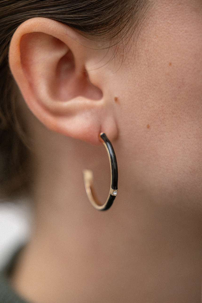 Ensemble boucles d’oreilles anneaux or et noir