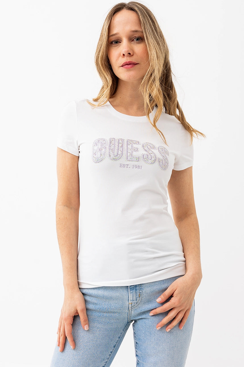 Le t-shirt Guess logo dentelle et strass : une touche de glamour au quotidien