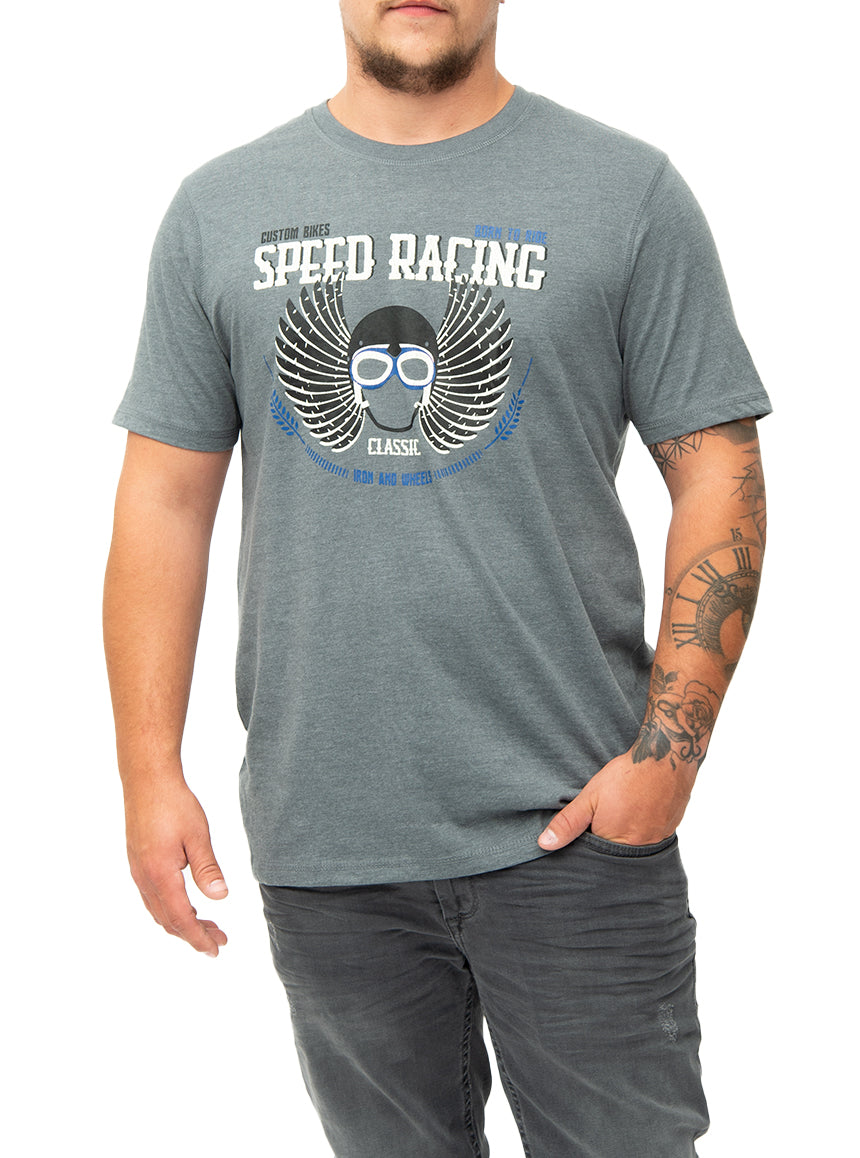 T-shirt pour homme à col rond. Imprimé "Speed Racing".
