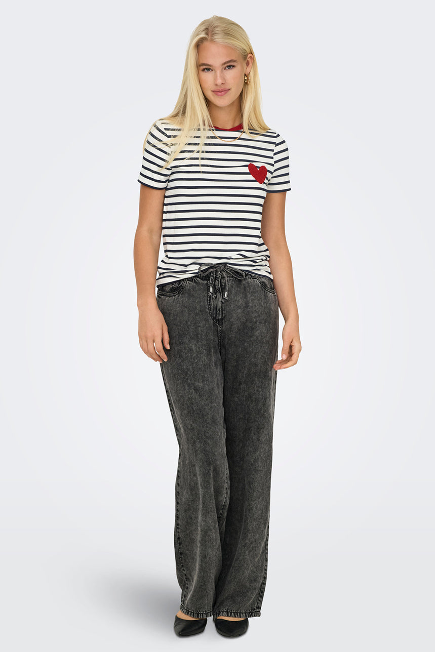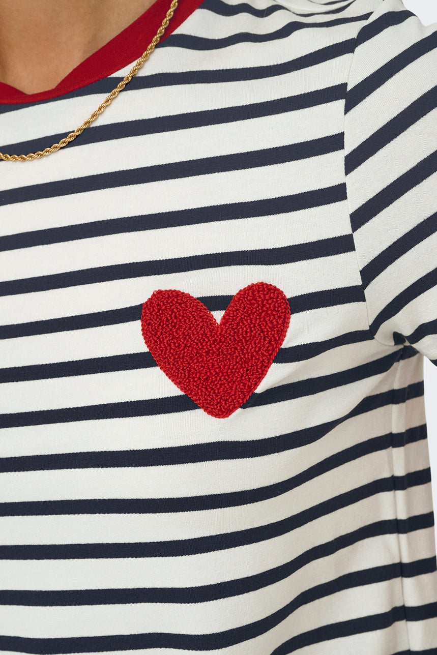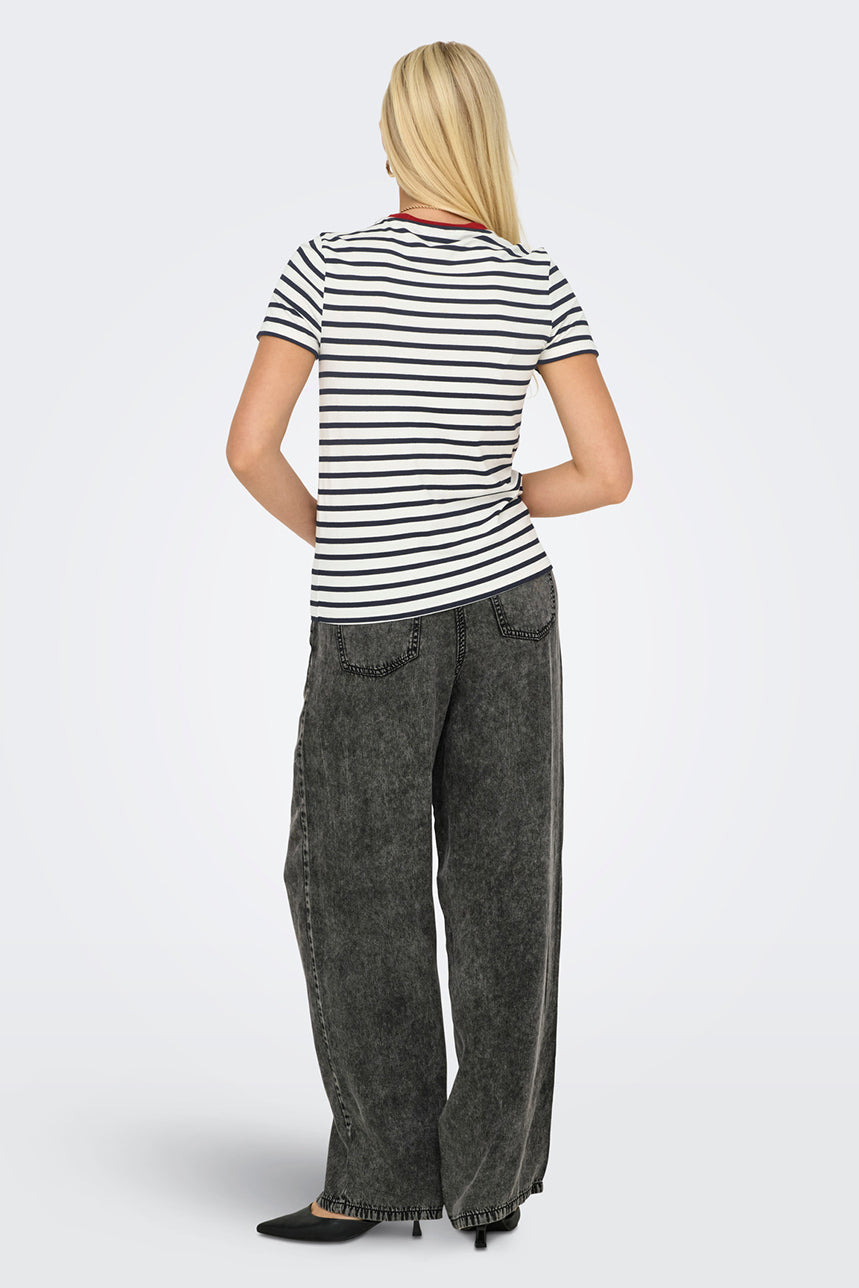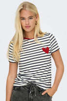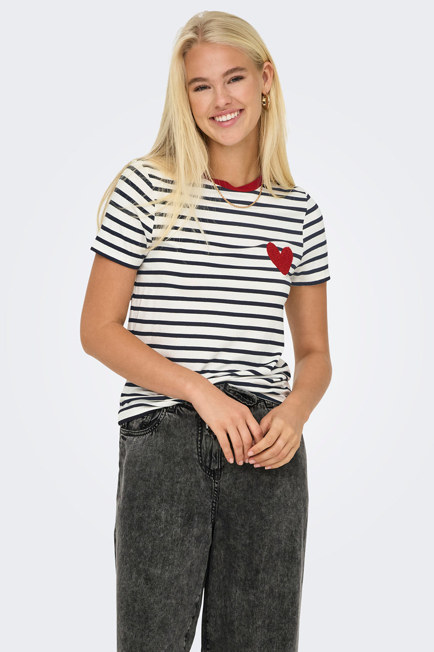 À la fois ludique et délicat, le t-shirt rayé avec broderie à la poitrine apporte une touche de fraîcheur à votre garde-robe. Sa coupe droite offre un tombé naturel, tandis que le col rond de couleur accentuée ajoute une note contrastée et dynamique. Les manches courtes et la broderie délicate à l’emplacement d’une poche poitrine rehaussent ce basique d’un charme discret. Confectionné dans une matière très douce et fluide, il assure un confort absolu au quotidien.