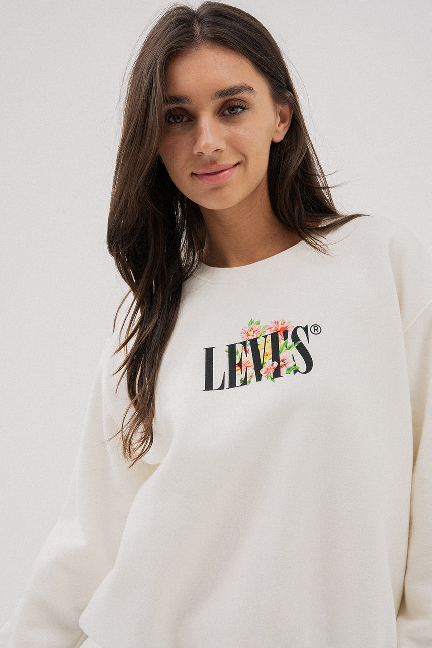 Ce chandail Crewneck Levi’s revisite le classique avec une touche de fraîcheur grâce à son logo fleuri distinctif à l’avant. Sa coupe ample assure un confort décontracté et une grande liberté de mouvement, tandis que son col rond et ses manches longues en font une pièce polyvalente à porter au quotidien. L’ourlet droit et les bordures côtelées au col, aux poignets et à l’ourlet ajoutent une finition soignée et durable. Conçu dans une matière douce et confortable, il se porte aussi bien avec un jeans que sur une jupe pour un look casual et tendance.