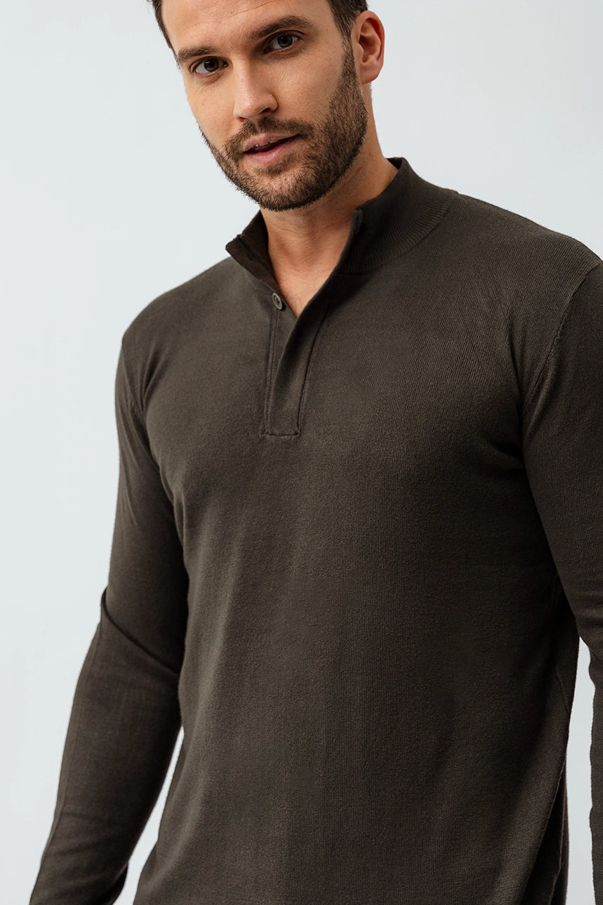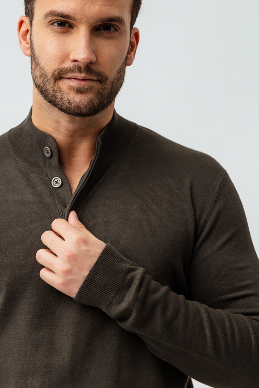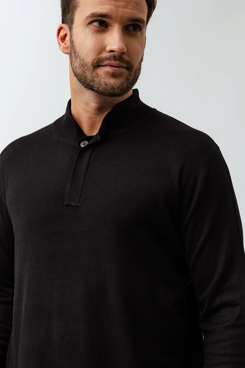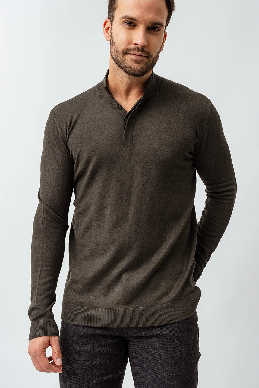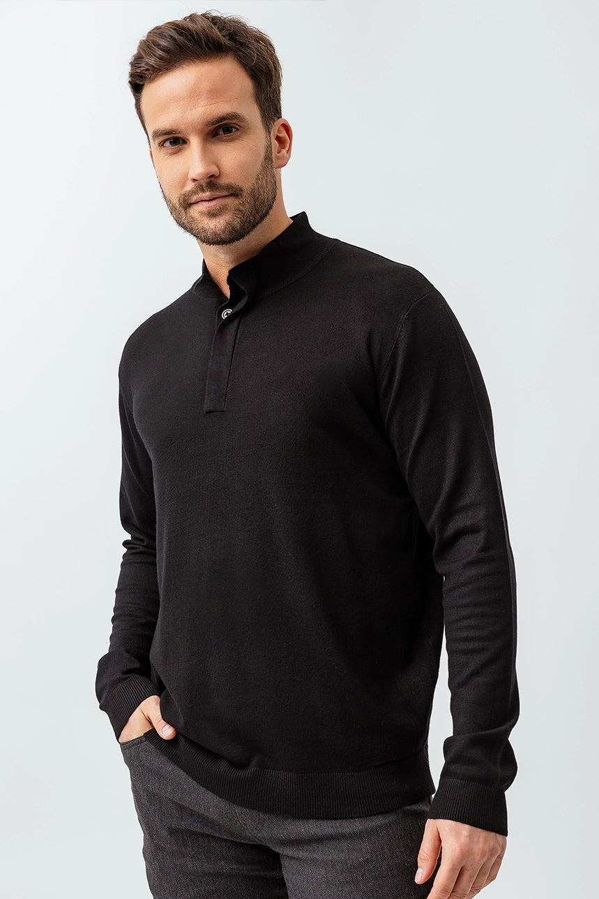 Ce chandail épuré et élégant se distingue par sa coupe régulière, idéale pour un look classique et confortable. Son col montant avec 4 boutons dissimulés apporte une touche de sophistication discrète, parfaite pour toutes les occasions. Les manches longues et les bordures côtelées assurent une tenue structurée, tandis que le tissu extensible et confortable garantit un porté agréable tout au long de la journée.