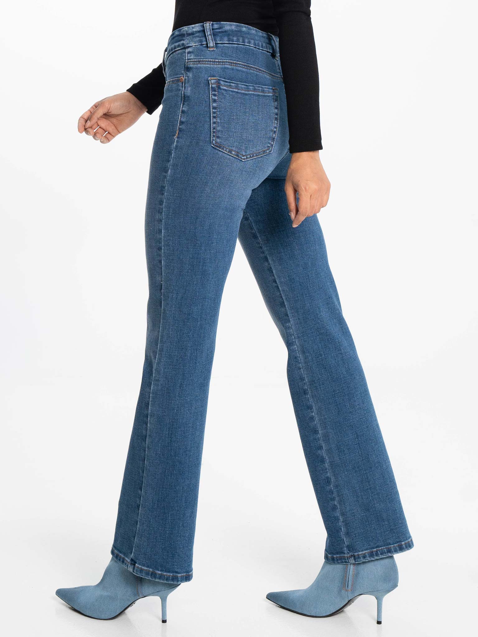 Jean Lois au délavage bleu moyen offrant une silhouette moderne et flatteuse. Sa coupe légèrement évasée allonge la jambe et apporte une touche rétro chic parfaite pour le quotidien.