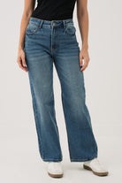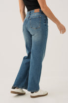 Le jeans bleu délavé à jambe large | Modèle Lily
