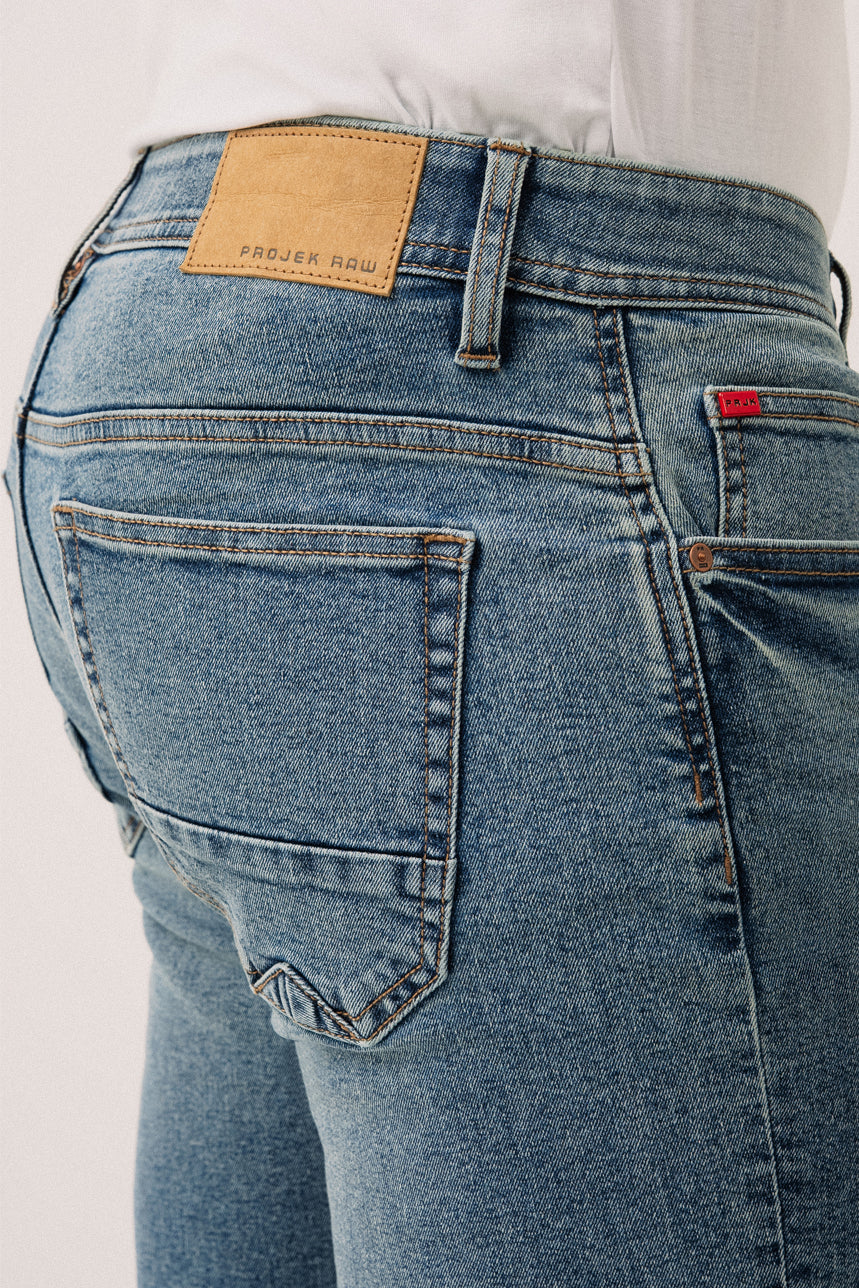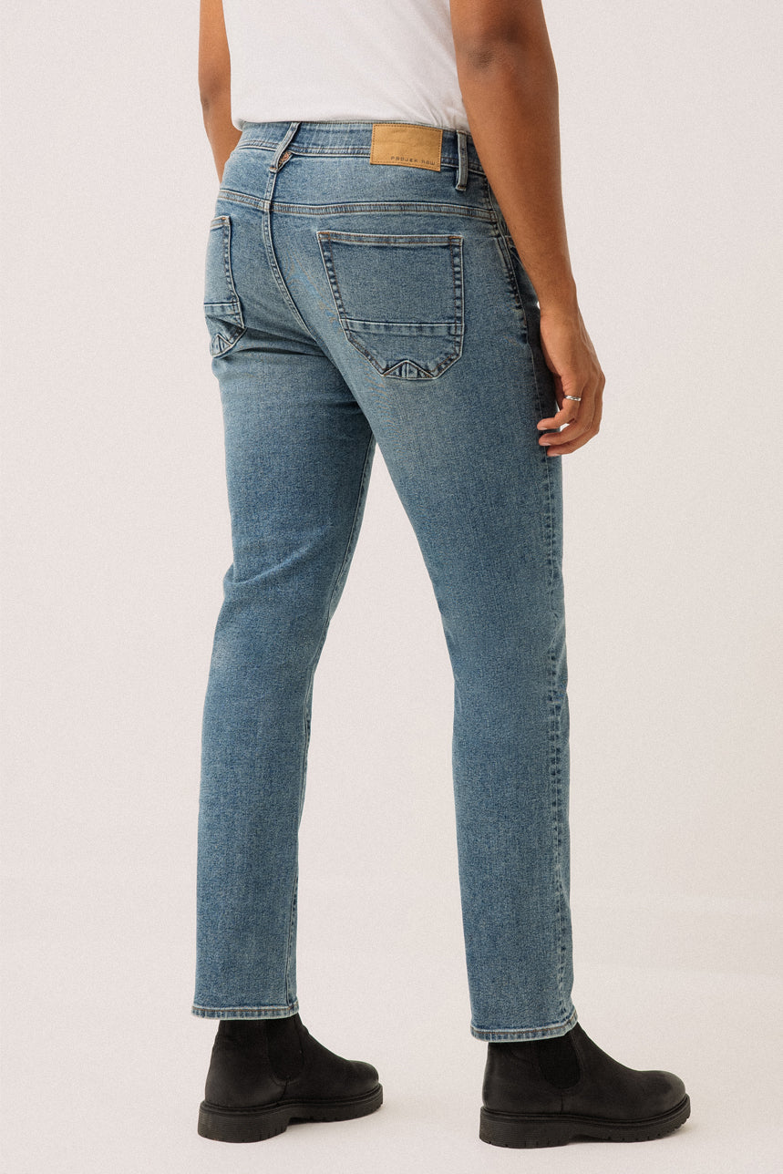 Le jeans étroit pâle par Projek Raw | Modèle Baru est une pièce polyvalente qui allie confort et style. Sa taille mi-haute et sa coupe droite offrent un tombé intemporel qui s’adapte à toutes les silhouettes, tandis que la jambe droite assure une allure classique et décontractée. Conçu avec le style 5 poches traditionnel, il est doté d’une ceinture munie d’une bande élastique intérieure pour plus de confort et d’ajustement. Sa fermeture éclair avec bouton à l’avant et ses 5 passants de ceinture ajoutent à sa praticité. Réalisé dans un denim doux et légèrement élastique, il assure une grande liberté de mouvement tout en conservant sa forme.