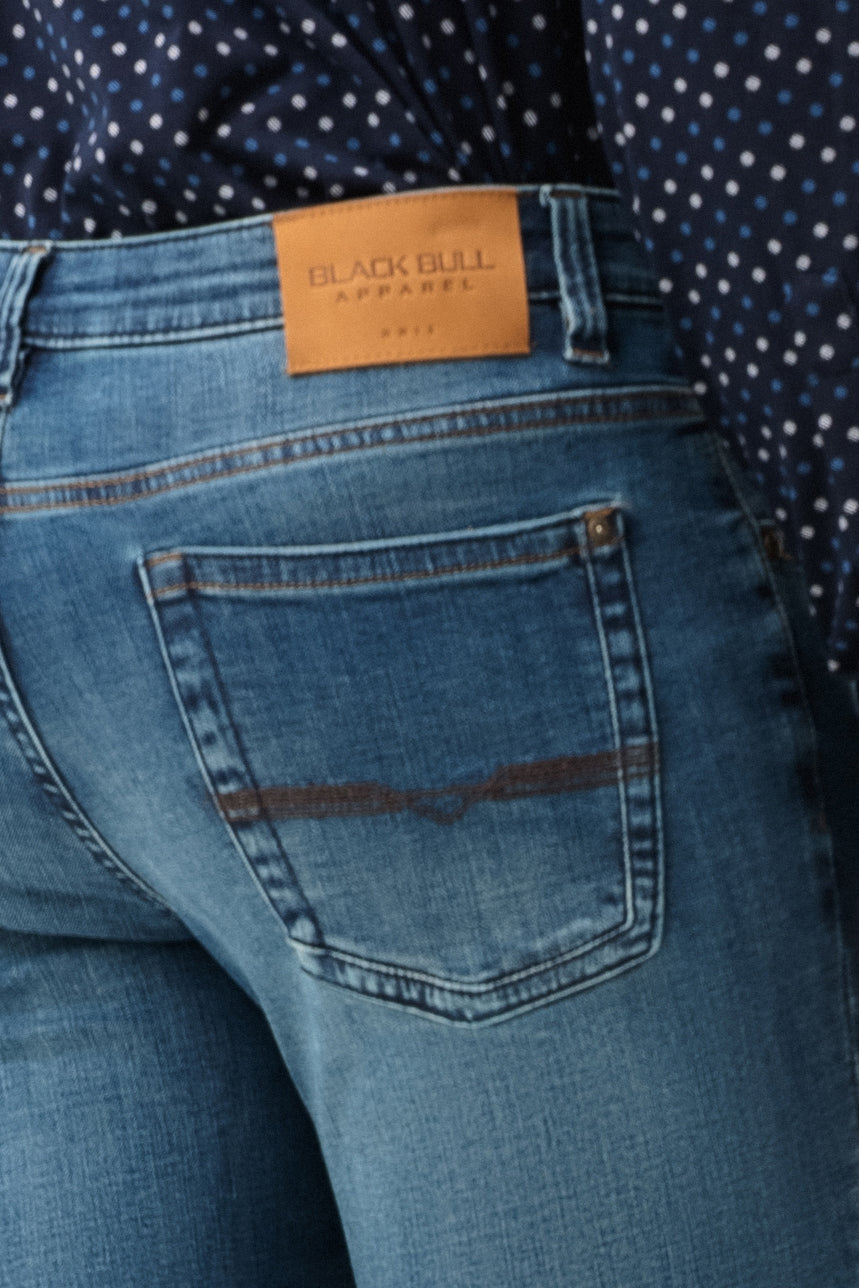 Le jeans régulier par Black Bull | Modèle MAD est une pièce polyvalente pensée pour allier confort et style. Conçu avec une taille basse et une jambe droite légèrement fuselée, il offre une silhouette moderne sans sacrifier la liberté de mouvement. Sa coupe 5 poches classique est rehaussée par une bande élastique intégrée à la taille, garantissant un ajustement optimal et pratique au quotidien. Doté d’une fermeture éclair avec bouton à l’avant et de cinq passants de ceinture, il conserve tous les détails d’un denim traditionnel. Sa matière extensible assure souplesse et confort, en faisant un incontournable facile à porter aussi bien pour un look décontracté que pour un style plus soigné.