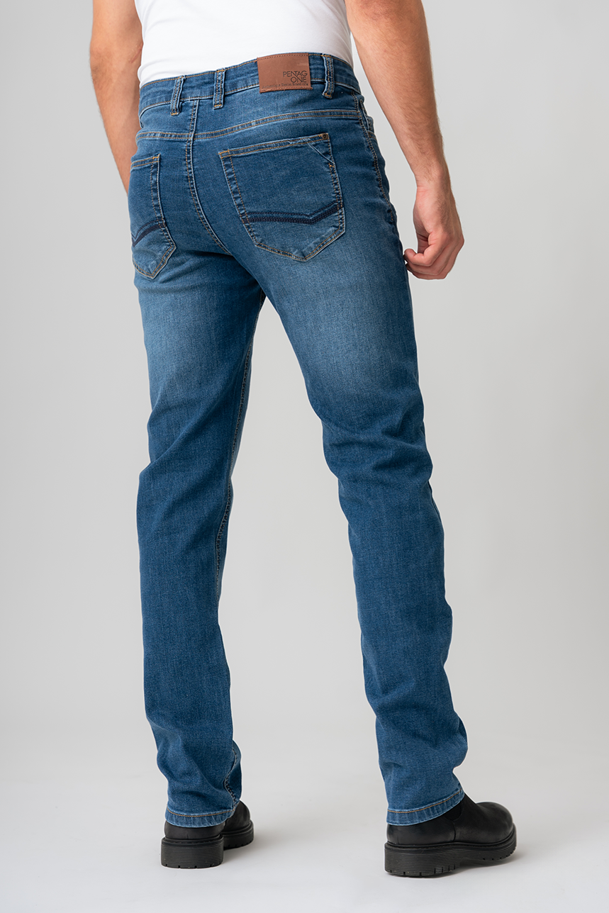 Jean ultra extensible dessiné au Québec en exclusivité pour Pentagone. Denim d'origine durable fabriqué à partir de polyester REPREVE™ fait de bouteilles de plastique recyclées. Doux et confortable, ce jean pour homme vous offrira un confort inégalé. Porté avec un t-shirt, un chandail ou une chemise, il conviendra parfaitement à toutes vos activités quotidiennes.