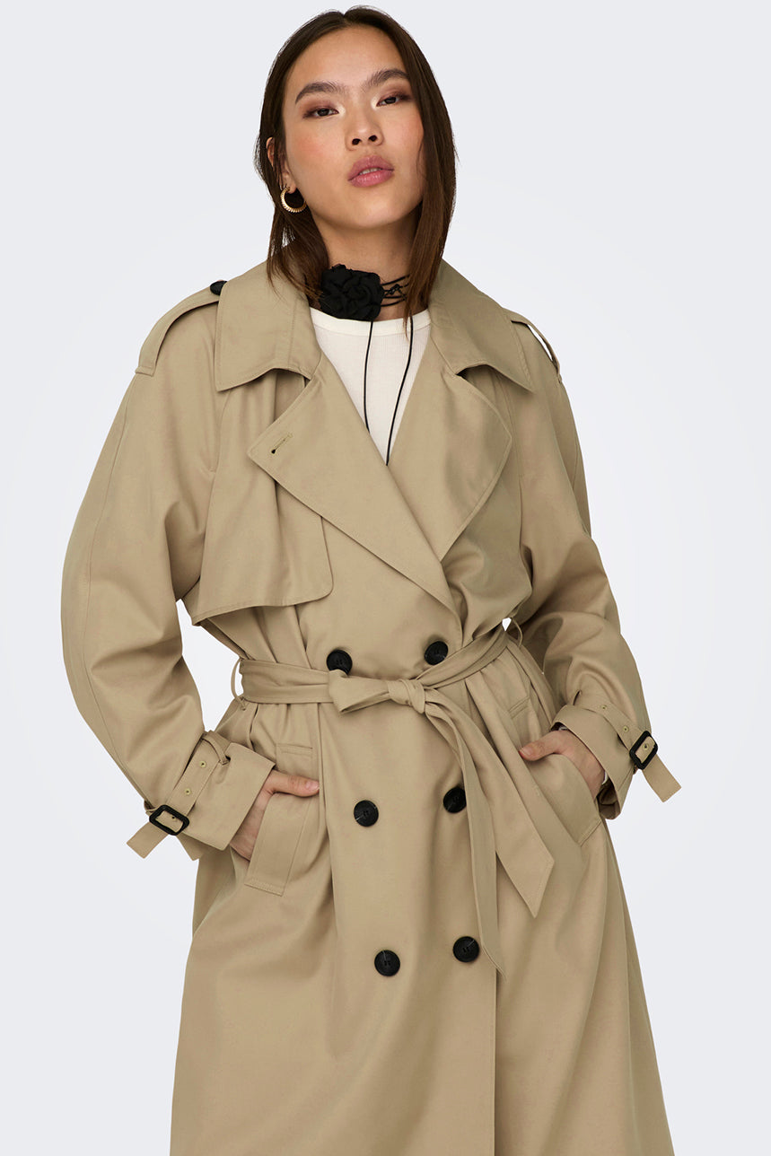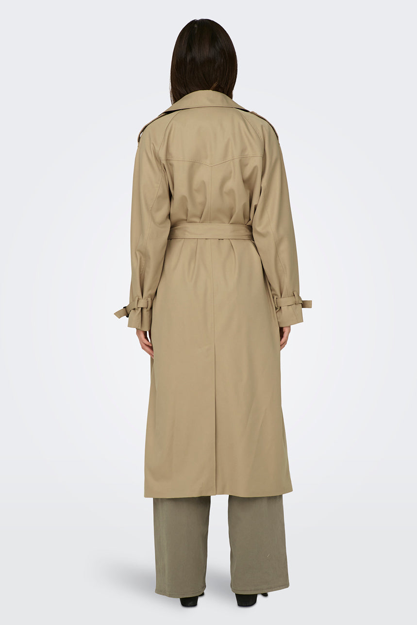 Le manteau Trench-coat beige revisite un classique intemporel avec élégance et praticité. Sa coupe ligne A et son col Napoléon lui confèrent une allure sophistiquée, tandis que la boutonnière double à six boutons et la ceinture en tissu à nouer soulignent la taille pour une silhouette structurée. Conçu avec des détails fonctionnels tels que les poches Welt en angle, les boucles d’ajustement aux poignets et le bavolet à l’épaule, il allie style et confort. Sa longueur maxi, son pli d’aisance au dos et sa doublure intégrale aux manches et au corps en font une pièce raffinée, parfaite pour compléter des looks urbains et élégants en toute saison.