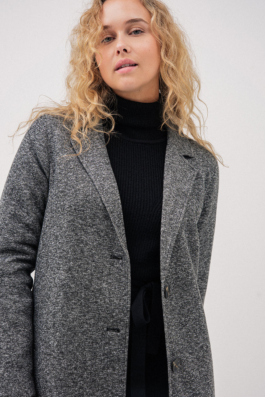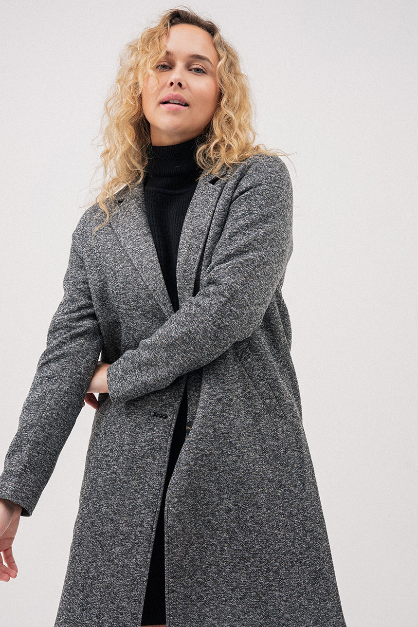 Confort et élégance s’unissent dans ce manteau droit à la coupe ample, idéal pour les transitions de saison. Confectionné dans un tissu léger moucheté, il offre un tombé fluide et une allure décontractée chic. Son col cranté classique et sa fermeture à deux boutons au milieu-devant structurent la silhouette avec simplicité.