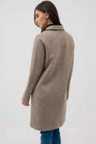Les manches longues régulières assurent une couvrance optimale, tandis que les poches Welt en angle à l’avant apportent praticité et style. Avec son ourlet droit qui tombe sous le genou, ce manteau propose une longueur flatteuse et moderne. Il est entièrement doublé au corps et aux manches pour plus de confort et de finition.