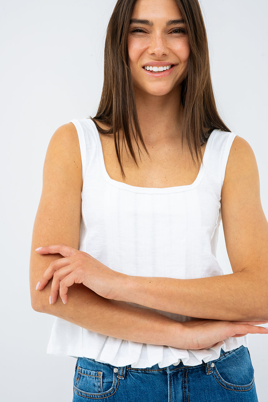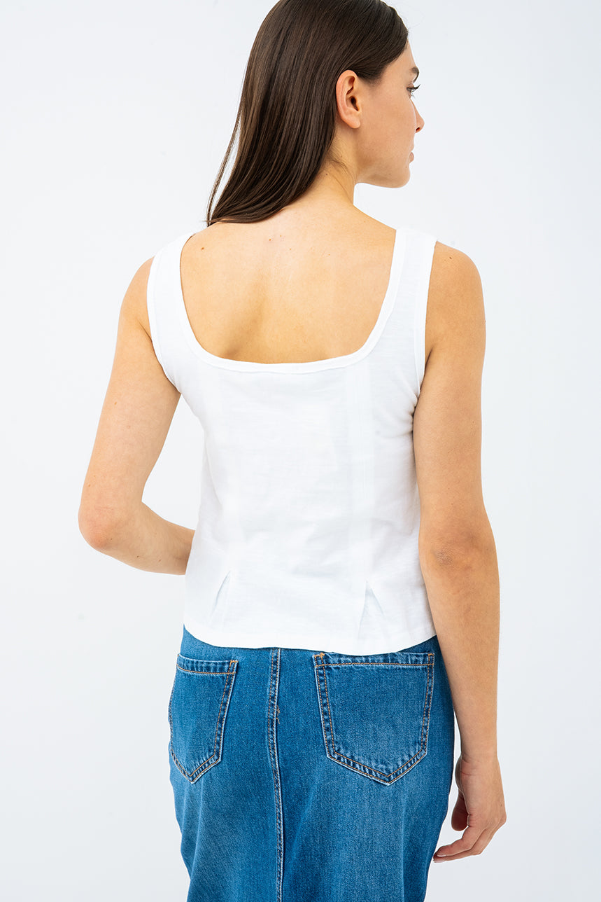 Essentielle et polyvalente, la camisole courte en jersey se distingue par sa coupe cintrée qui épouse joliment la silhouette. Son col en U et sa forme sans manches en font une pièce idéale pour les superpositions ou les journées chaudes. Confectionnée dans une matière extensible et confortable, elle assure une liberté de mouvement optimale tout en offrant un look ajusté et moderne. Parfaite à porter seule ou sous une chemise ouverte pour un style décontracté.