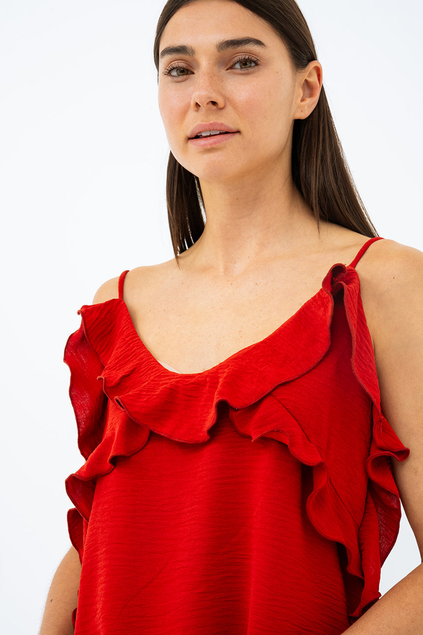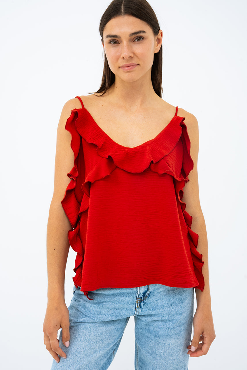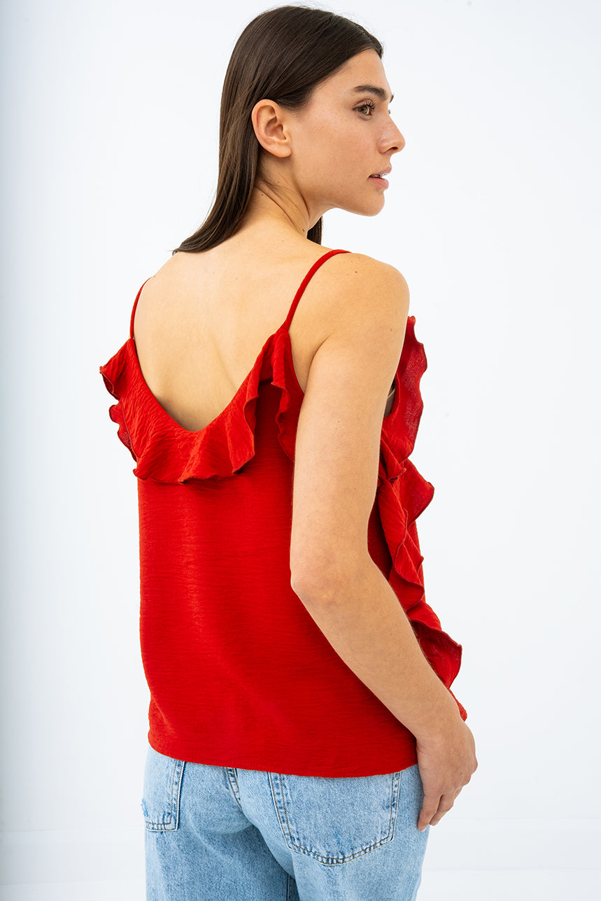 La camisole à volants fines bretelles