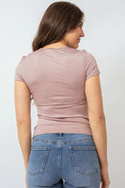 Élégance et confort se rencontrent avec le t-shirt satiné avec fronces. Sa coupe ajustée met en valeur la silhouette, tandis que ses manches courtes froncées ajoutent une touche sophistiquée. Confectionné dans une matière satinée, extensible et confortable, il apporte une subtile brillance pour une allure chic et raffinée.