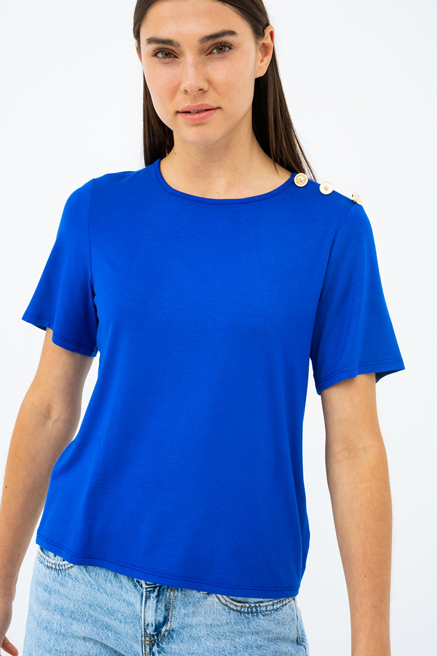 Décontracté avec une touche d’originalité, le t-shirt uni à boutons décoratifs se distingue par sa coupe ample et son détail de boutons sur une épaule, qui lui apportent style et personnalité. Son col rond et ses manches courtes en font un incontournable facile à porter, tandis que sa matière extensible et confortable assure une liberté de mouvement optimale. Un basique revisité, parfait pour un look simple mais soigné.
