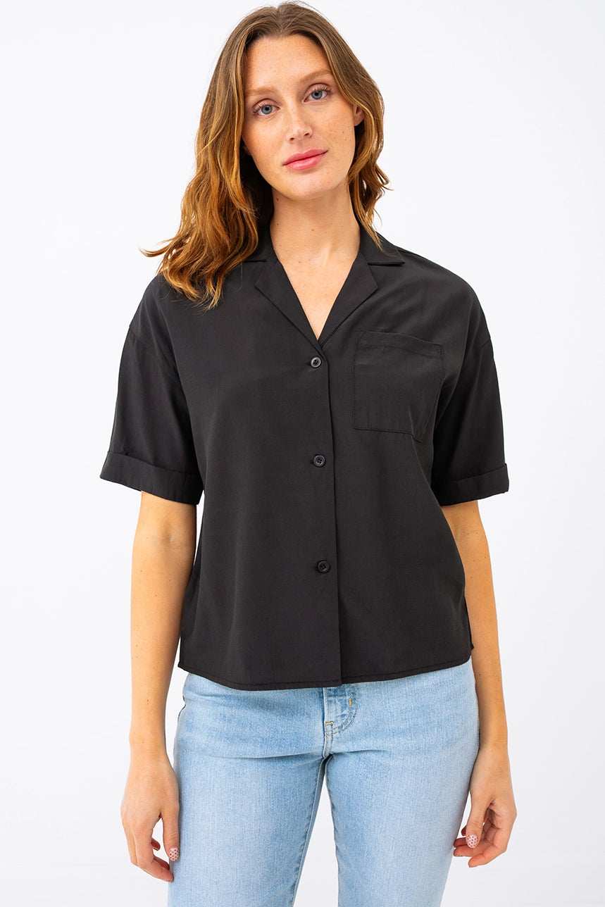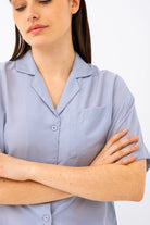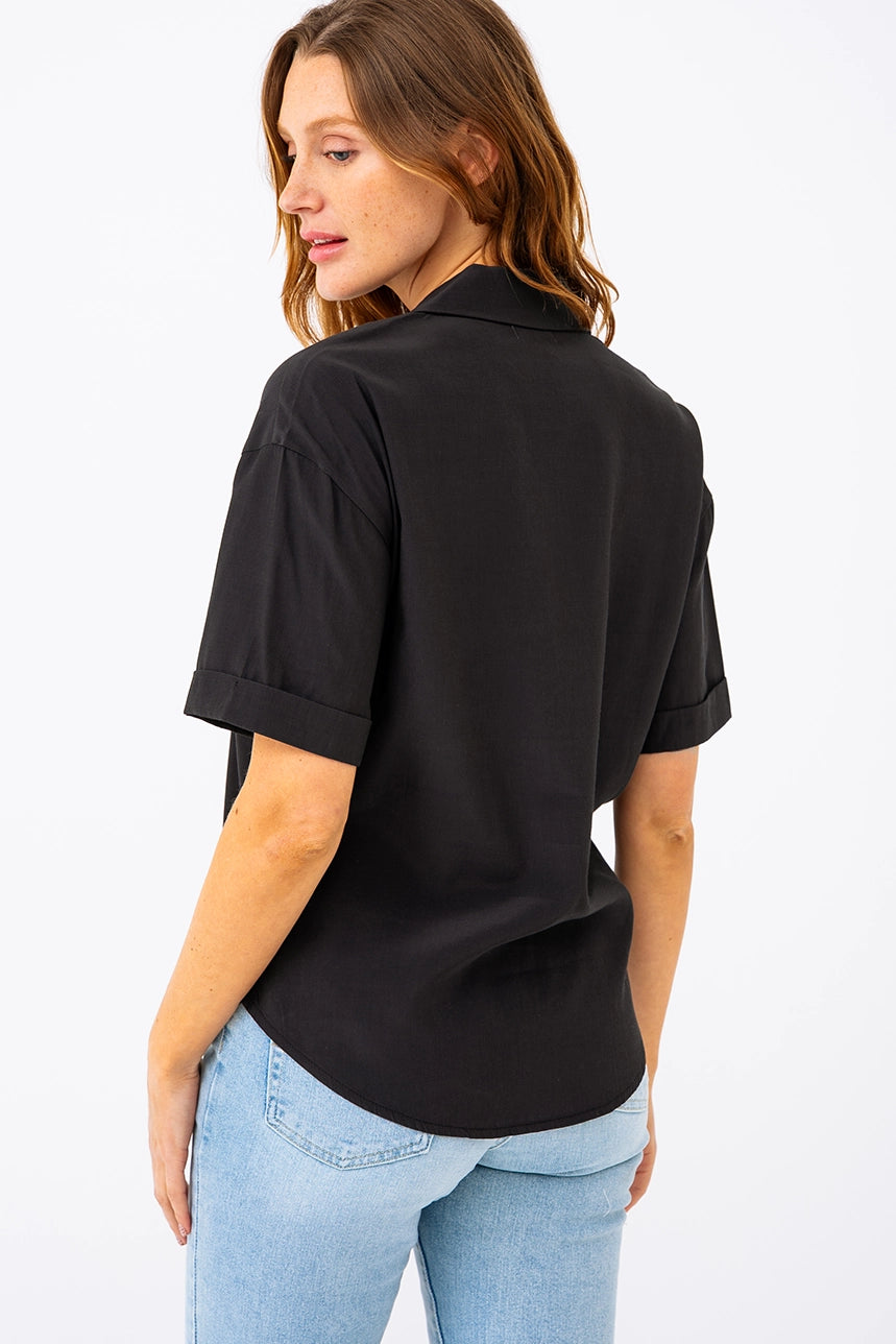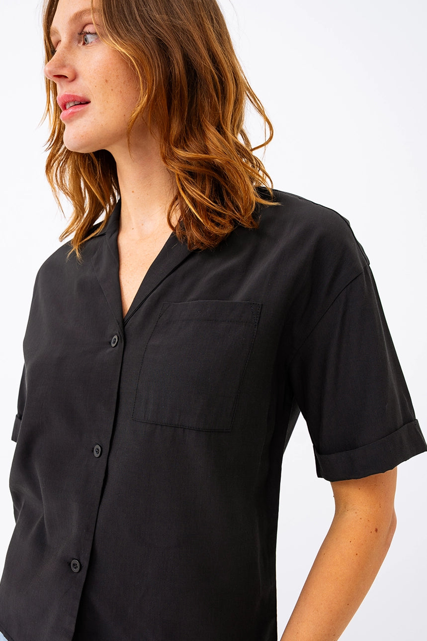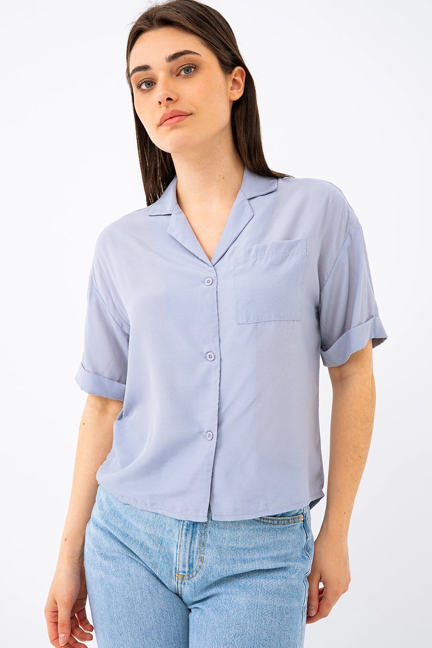 Minimaliste et pleine d’allure, cette blouse courte unie allie confort et style décontracté. Sa coupe ample et son tissu fluide et léger en font un essentiel facile à porter au quotidien. Dotée d’un col à revers, de manches courtes avec revers cousus et d’une poche poitrine discrète, elle mise sur les détails justes. L’ourlet arrondi au dos apporte une touche de mouvement, tandis que la boutonnière pleine longueur permet de varier les styles, ouverte ou fermée.