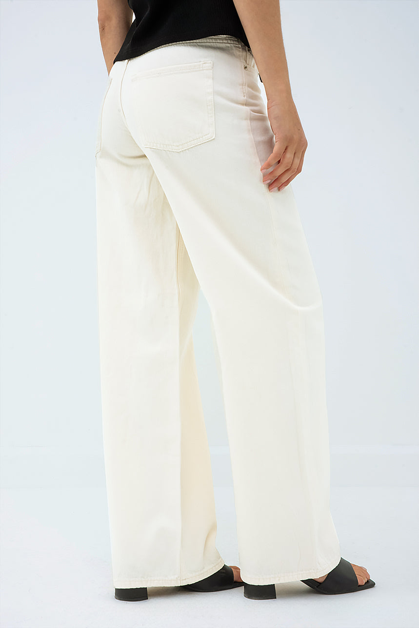 Le jeans large en denim crème par JJXX | Modèle Tokyo