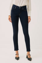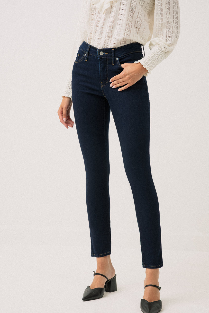 Le jeans étroit foncé Levi’s | Modèle 311 Filiforme moulant est conçu pour offrir une silhouette flatteuse et moderne grâce à sa coupe ajustée. Sa taille régulière est rehaussée d’un panneau lissant qui affine le ventre, tandis que la coupe moulante au niveau des hanches et des cuisses met en valeur les formes tout en restant confortable. La jambe filiforme élance la silhouette et s’agence facilement autant avec des talons que des chaussures décontractées. Doté de la coupe classique à 5 poches, d’une fermeture éclair avec bouton à l’avant et de 5 passants de ceinture, il allie praticité et style intemporel. Confectionné dans un denim extensible et doux, ce modèle assure confort et liberté de mouvement, idéal pour une utilisation quotidienne tout en gardant une allure élégante