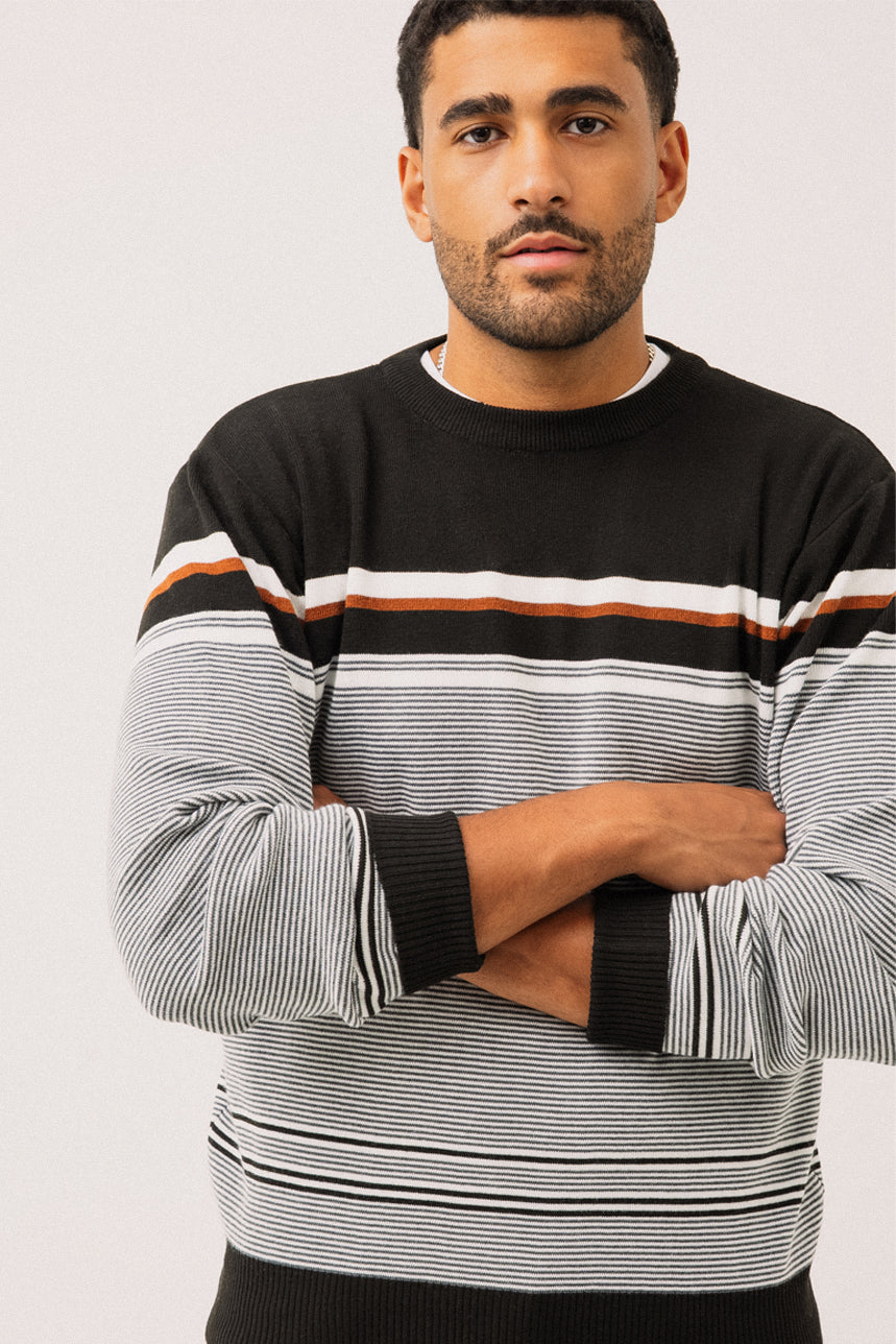 Le chandail en tricot léger rayé est une pièce polyvalente et confortable, parfaite pour un style décontracté chic. Sa coupe droite et son col rond classique en font un essentiel facile à porter au quotidien. Doté de manches longues et de bordures côtelées, il combine maintien et confort. Confectionné dans un tricot léger et extensible, il offre une belle aisance de mouvement tout en mettant en valeur la silhouette de façon naturelle. Ses rayures ajoutent une touche visuelle intemporelle, idéale pour dynamiser une tenue simple.