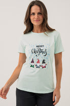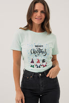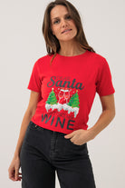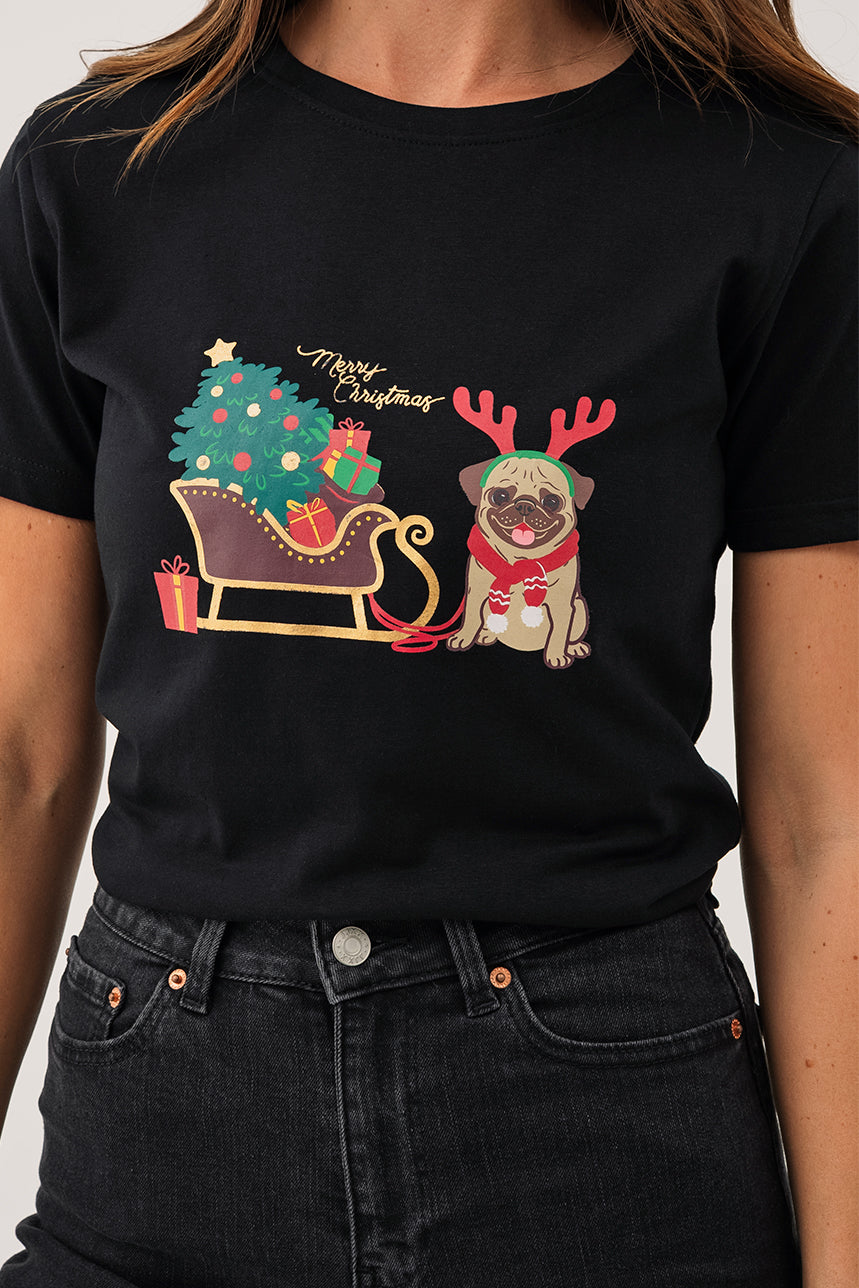 Ce t-shirt imprimé de Noël offre une coupe droite semi-ajustée et un col rond assorti, pour un look confortable et festif. Son imprimé à l’avant et ses manches courtes en font une pièce parfaite pour ajouter une touche de magie à vos tenues hivernales. Avec son ourlet droit et sa longueur aux hanches, il s’agence facilement à tous vos styles de saison.