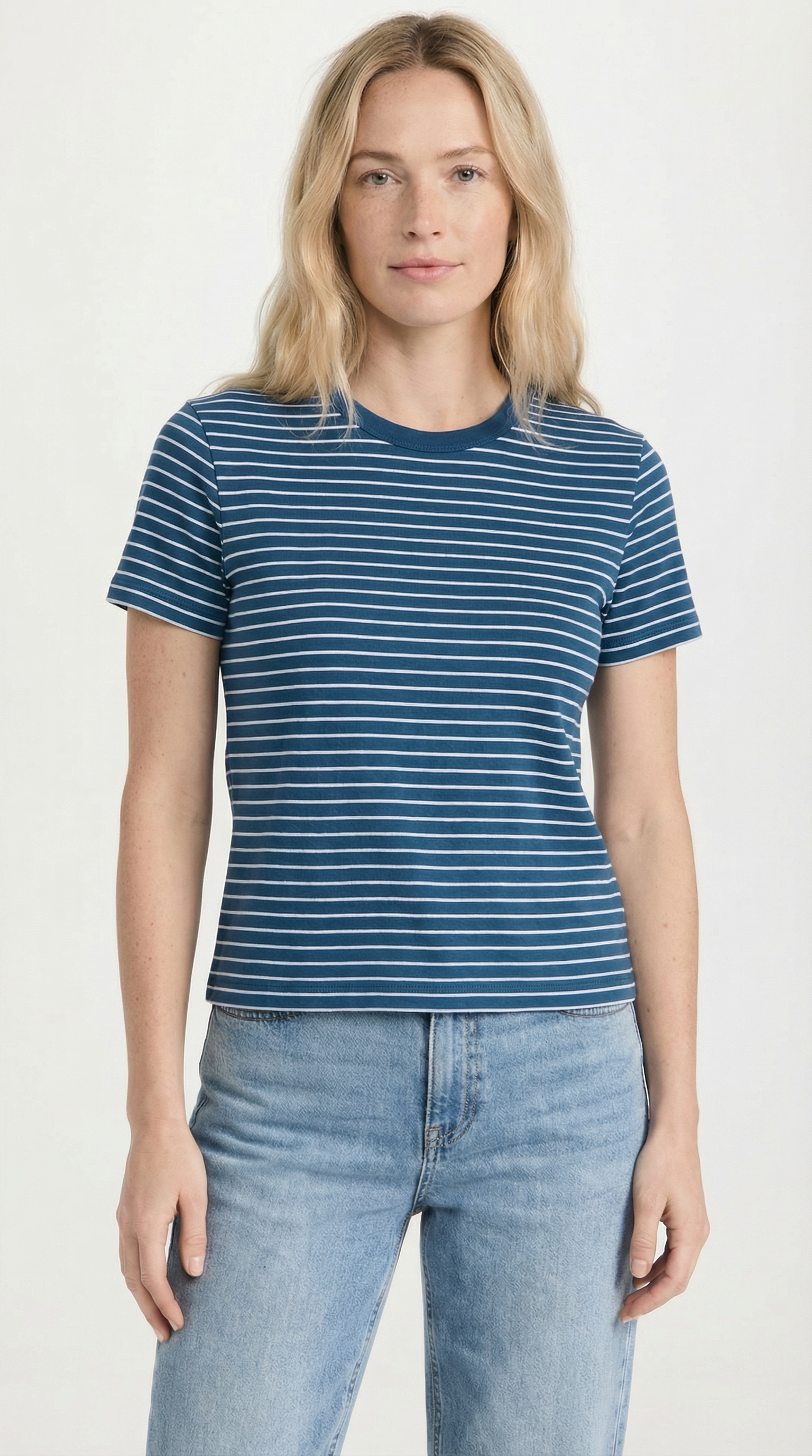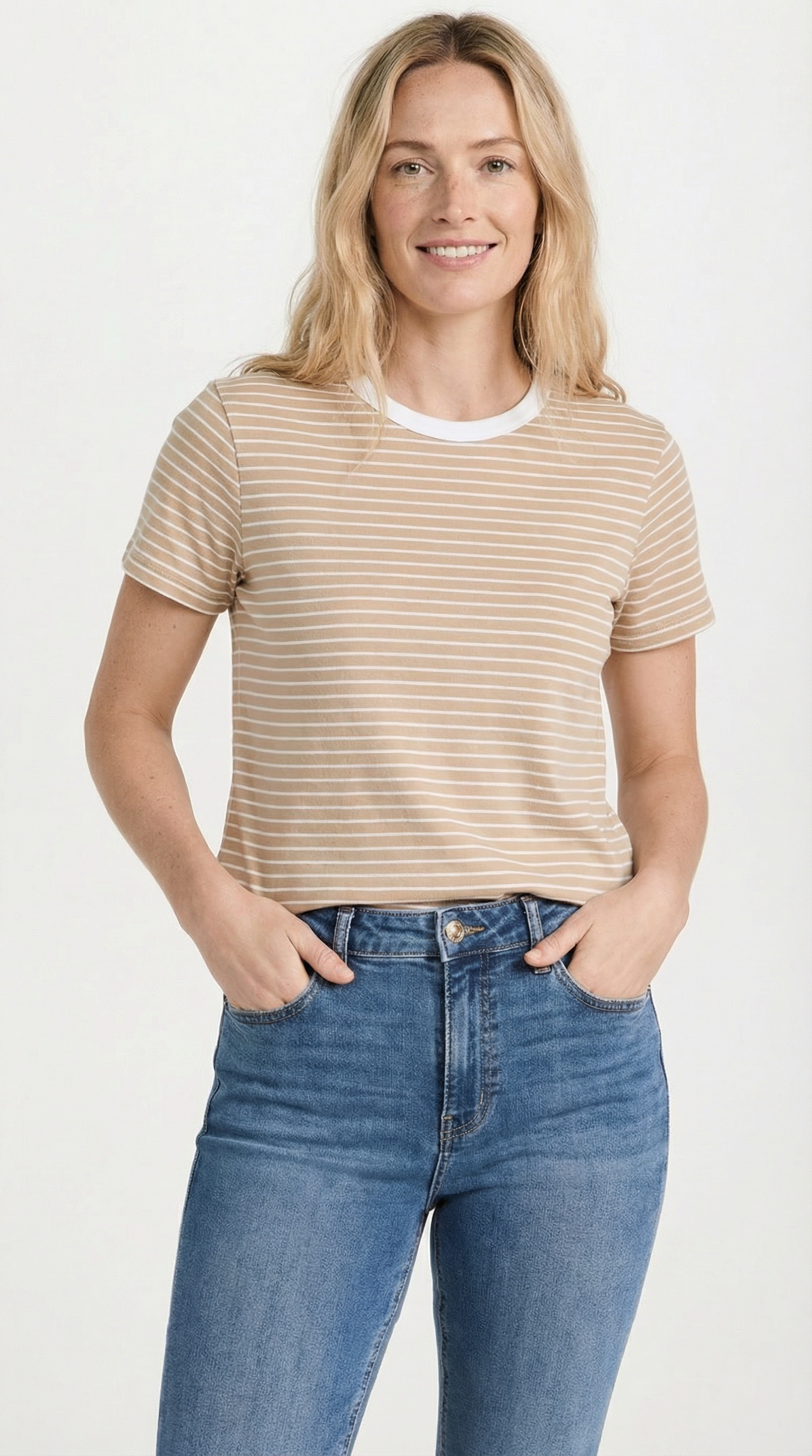 Ce t-shirt à la coupe régulière mise sur une silhouette moderne et décontractée, idéale pour le quotidien. Son tissu de qualité, à la fois épais et structuré, assure une belle tenue sans effet de transparence, tout en offrant un confort optimal. Son motif à rayures apporte une touche graphique discrète, faisant de ce modèle un essentiel facile à porter, en toute occasion. Disponible en 4 couleurs.