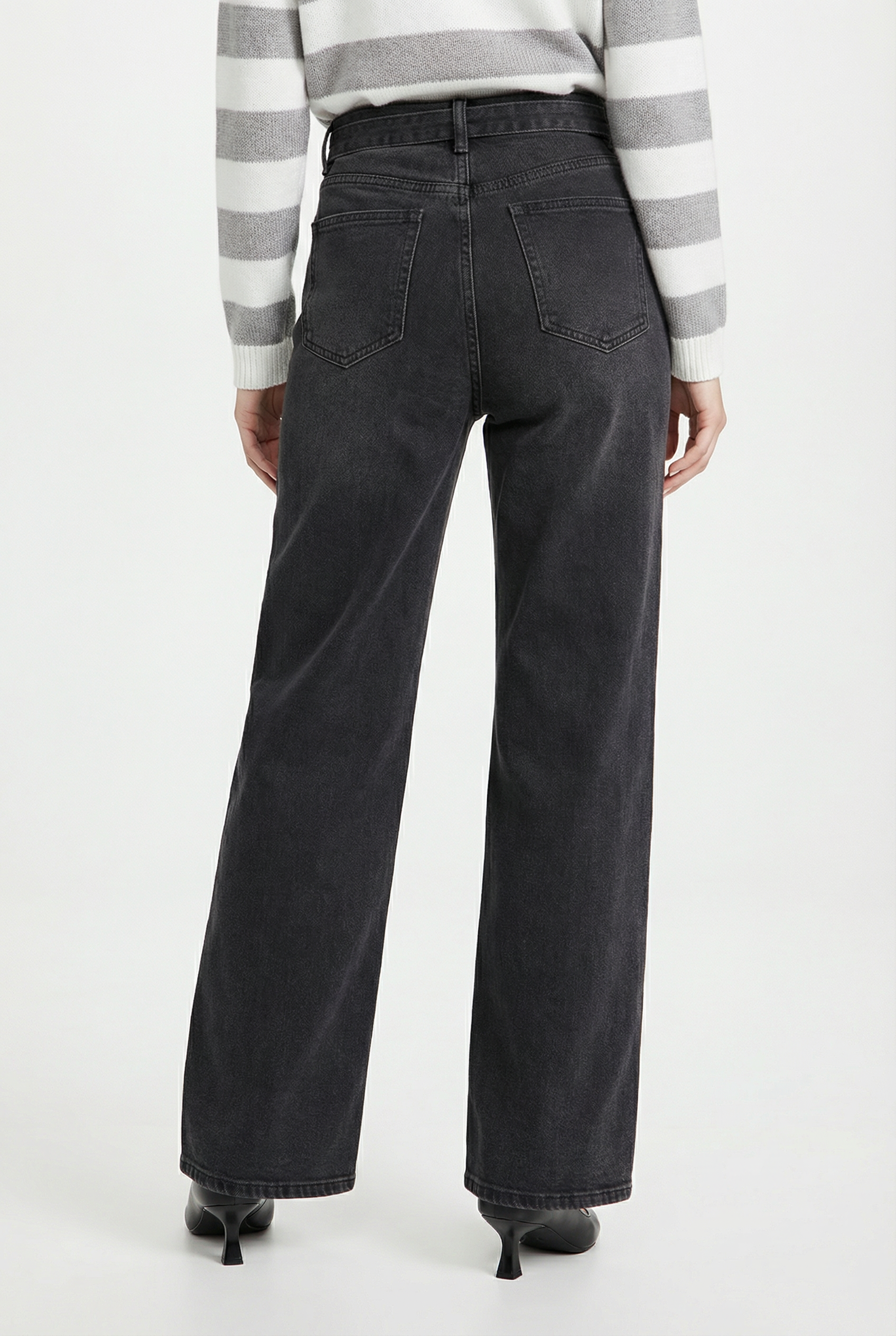 Ce jean large se distingue par sa coupe flatteuse et son allure moderne. Sa taille haute met la silhouette en valeur tout en offrant un bon maintien, tandis que sa jambe ample crée un tombé structuré et élégant. La ceinture à nouer ajoute une touche distinctive et permet d’ajuster le jean selon vos envies. Confectionné dans un denim confortable avec une légère élasticité, il accompagne naturellement les mouvements au quotidien.