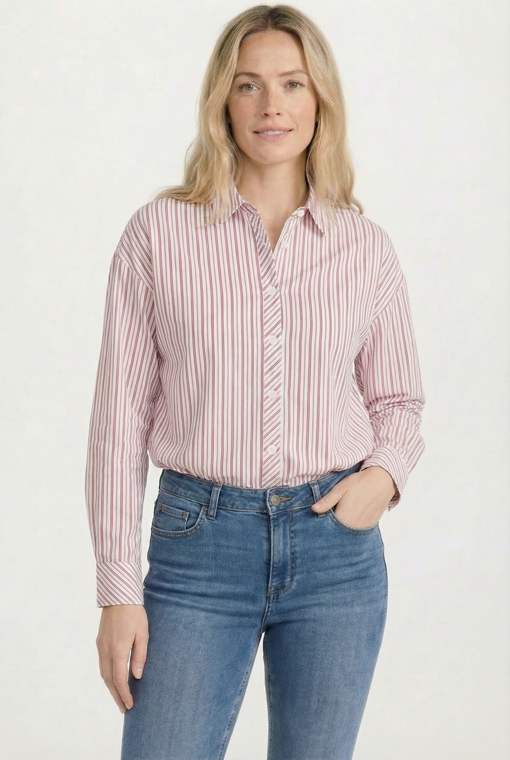 Chemise classique à rayures fines, parfaite pour un look à la fois élégant et décontracté. Facile à porter au quotidien, seule ou ouverte sur un t-shirt.