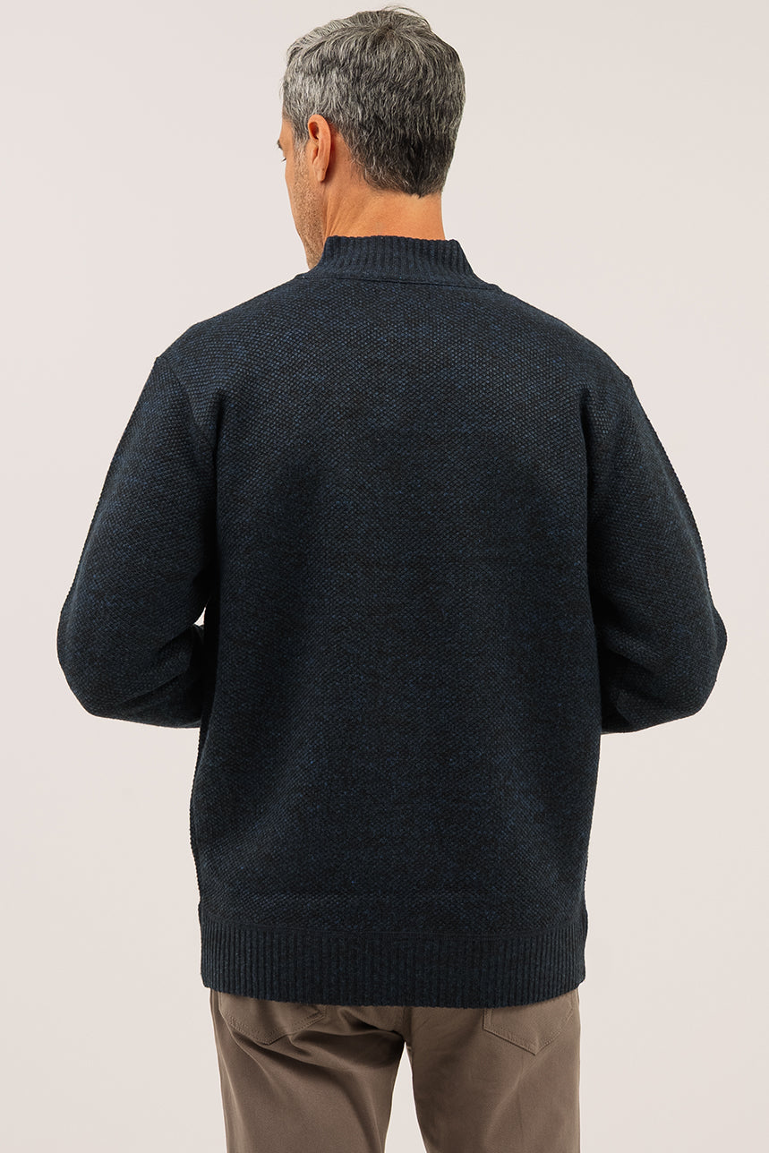 Le chandail en tricot chiné gris et noir avec fermeture éclair au col