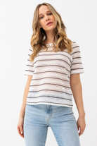 Apportez une touche bohème à votre garde-robe avec le t-shirt en crochet à rayures. Sa coupe régulière, son col rond et ses manches courtes en font une pièce à la fois tendance et confortable. Confectionné dans une matière légère, il est parfait pour les journées ensoleillées ou pour superposer avec style. Son design en crochet rayé ajoute une texture unique et un charme raffiné à votre look.
