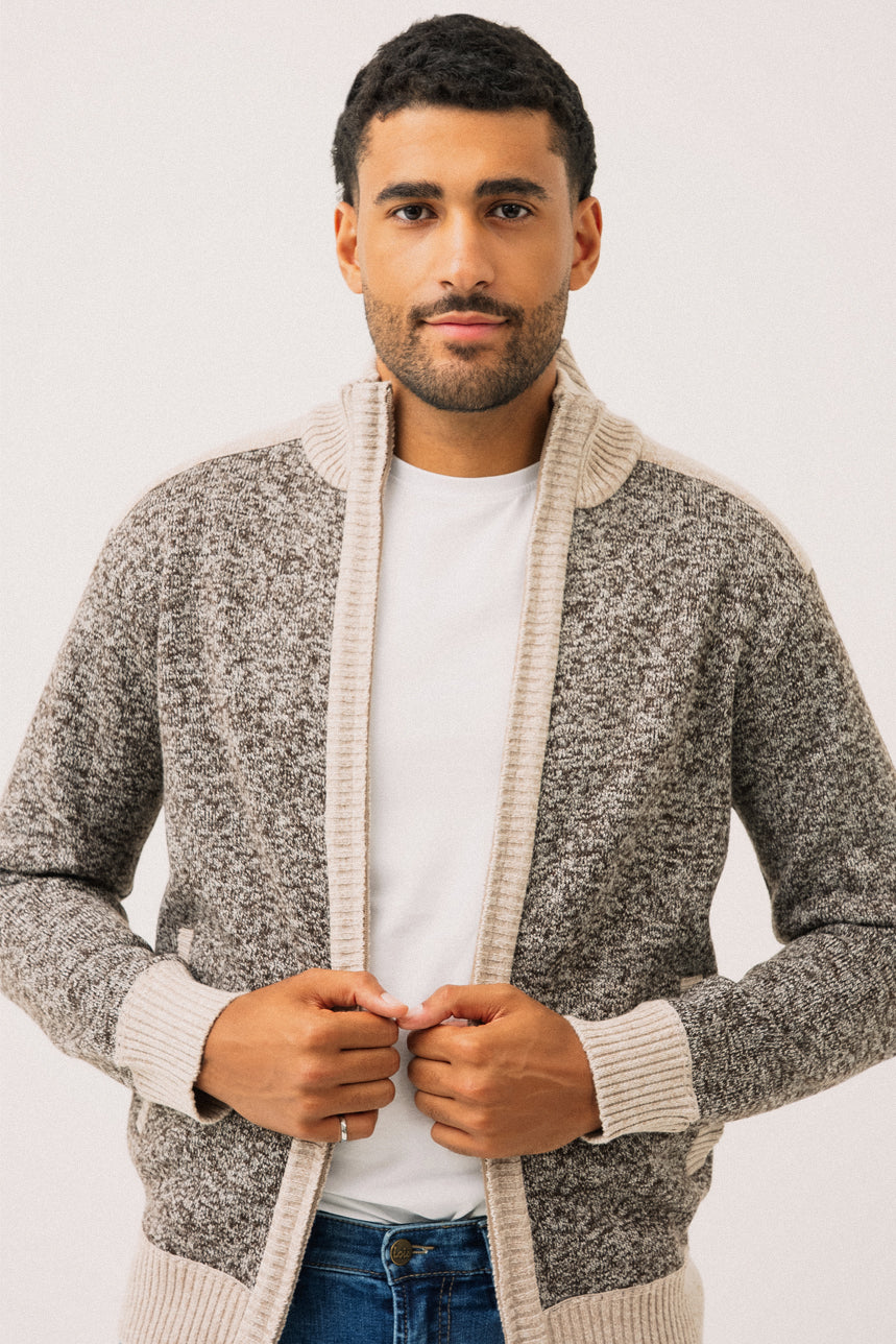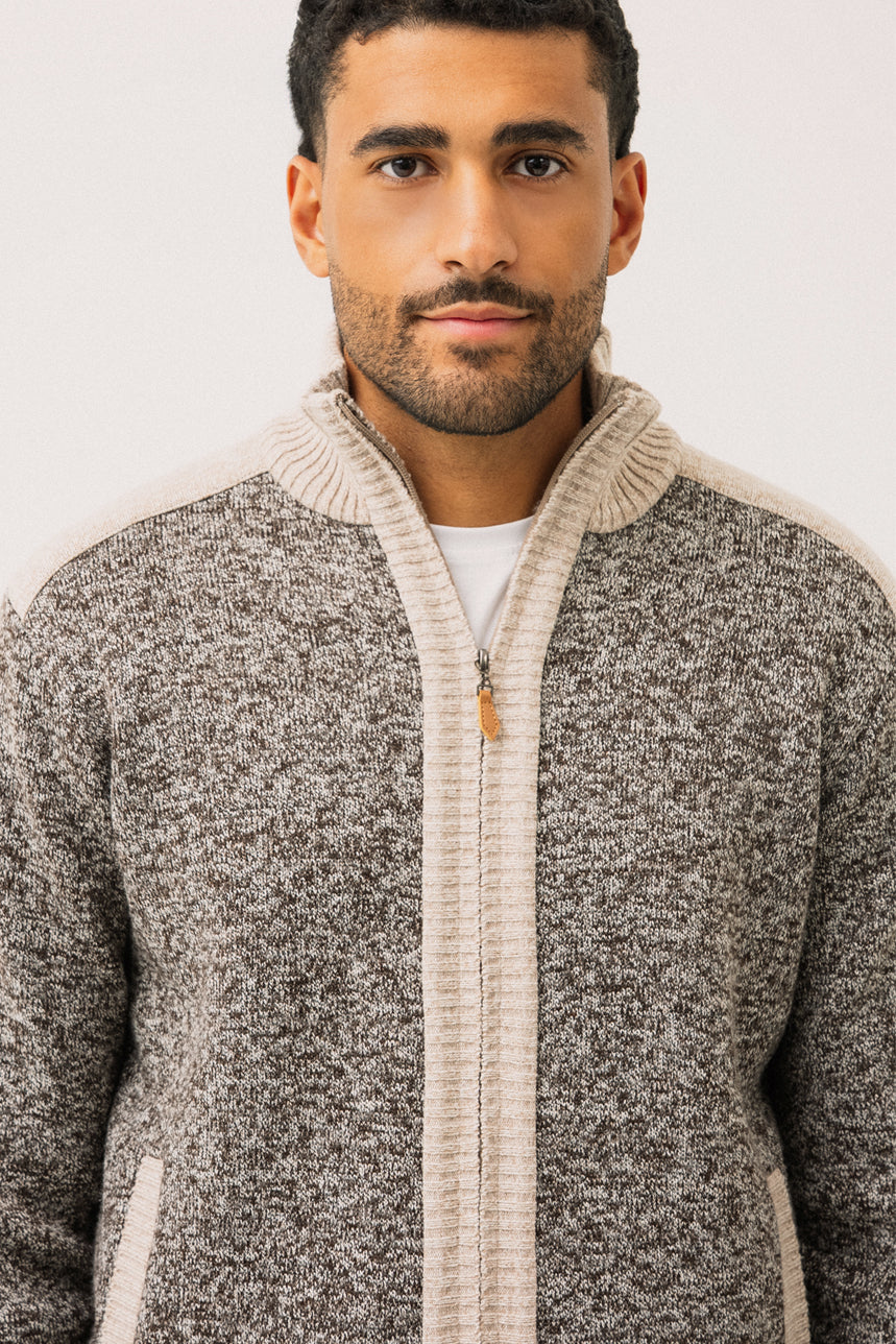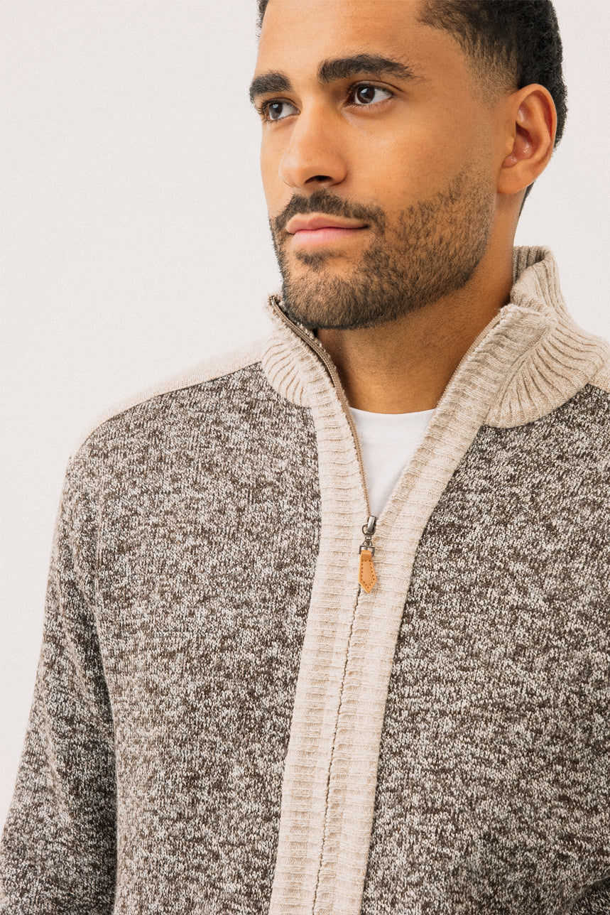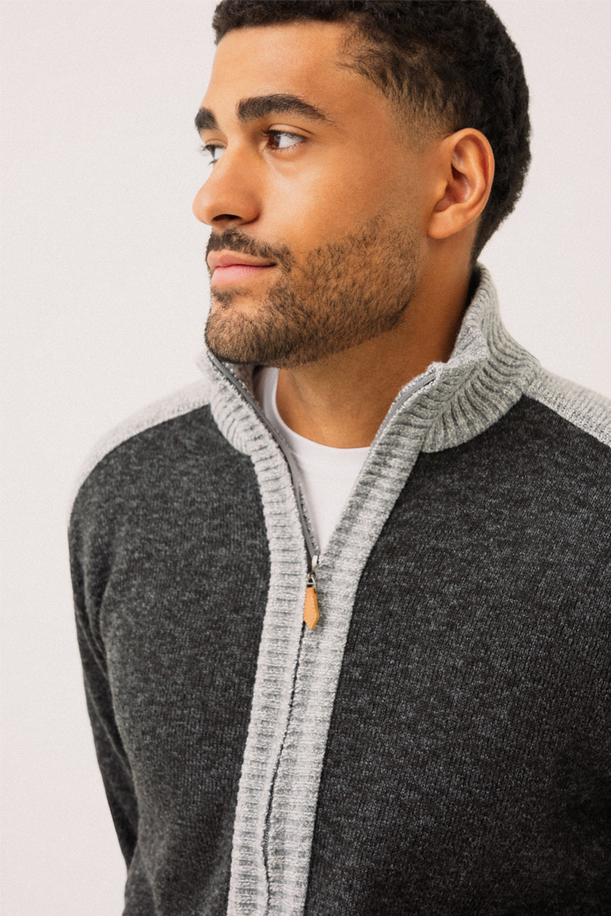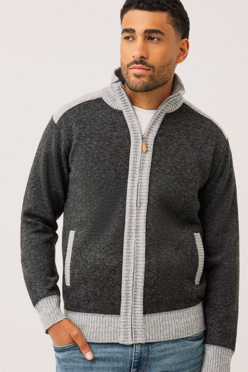 Le cardigan en tricot deux couleurs doublé en flanelle par Oxygen