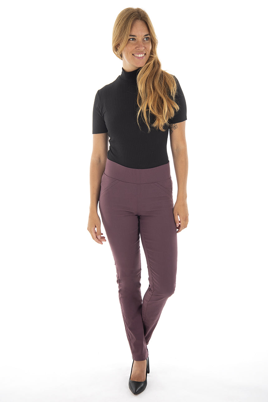 Pantalon pour femme étroit habillé offert en trois couleurs. Taille régulière avec fausses poches avant et arrière. Ce pantalon pour femme d’un chic coloré, vous procure confort et style pour vos tenues les plus habillées ! Portez-le avec une blouse et un blazer pour un look 100% chic et classique ou avec un t-shirt ou un tricot pour un look tout-aller !