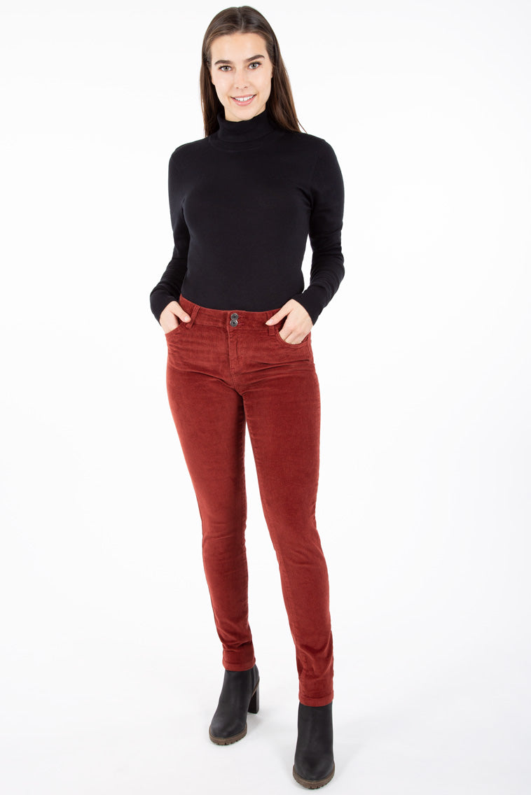Pantalon en velours côtelé pour femme, dessiné au Québec, exclusivement pour les boutiques Pentagone. Deux poches à l'avant ainsi que deux poches plaquées à l'arrière. Coutures ton sur ton. La coupe parfaite de ce pantalon pour femme vous séduira assurément.