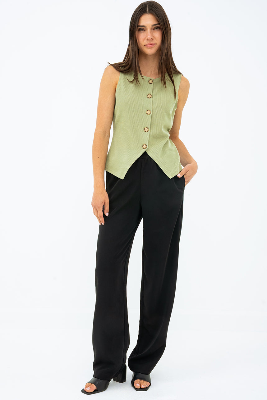 Alliant élégance et confort, le pantalon chic avec taille élastique offre une silhouette moderne grâce à sa coupe jambe droite parfaitement structurée. Sa taille élastique assure un ajustement facile et agréable, tandis que la matière douce avec bonne tenue garantit un tombé impeccable tout au long de la journée. Un essentiel polyvalent, idéal pour un look soigné au bureau comme en dehors.